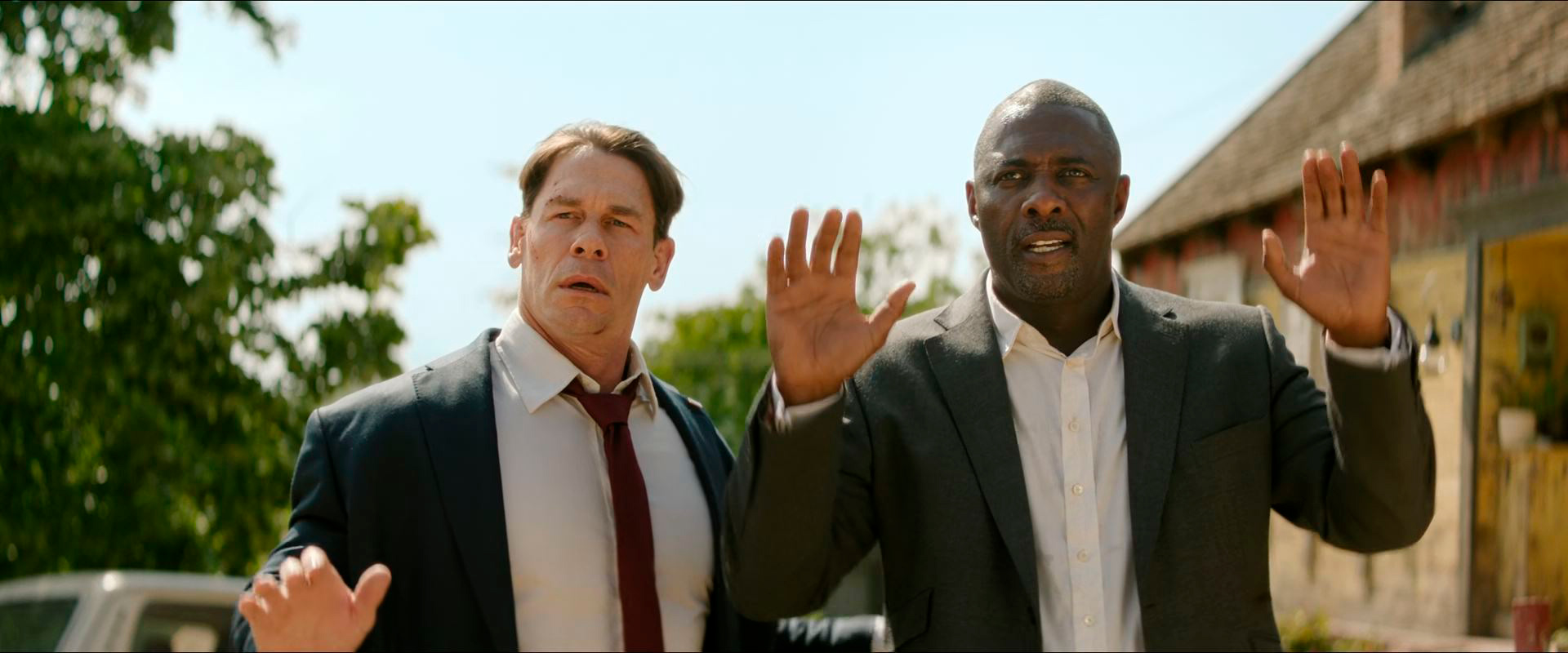Джон Сина с Идрисом Эльбой составили отличную экранную пару! Они и в "Отряде самоубийц: Миссия навылет" были очень хороши, причем у них там и типажи были слегка похожи: Идрис играл наемного киллера Бладспорта, невозмутимого и саркастичного, а Миротворец Джона Сины был похож на упертый вариант Капитана Америка, - но в "Отряде" они были в составе целой группы, а здесь у них, безусловно, главная роль.