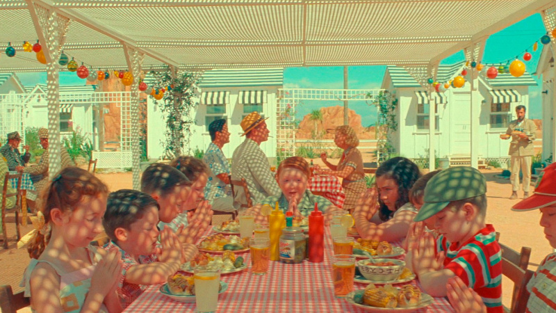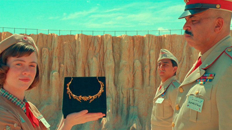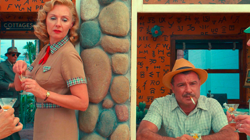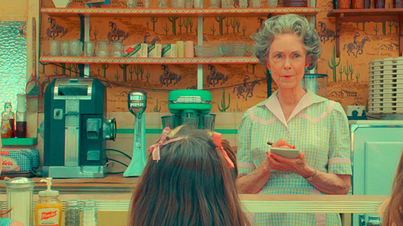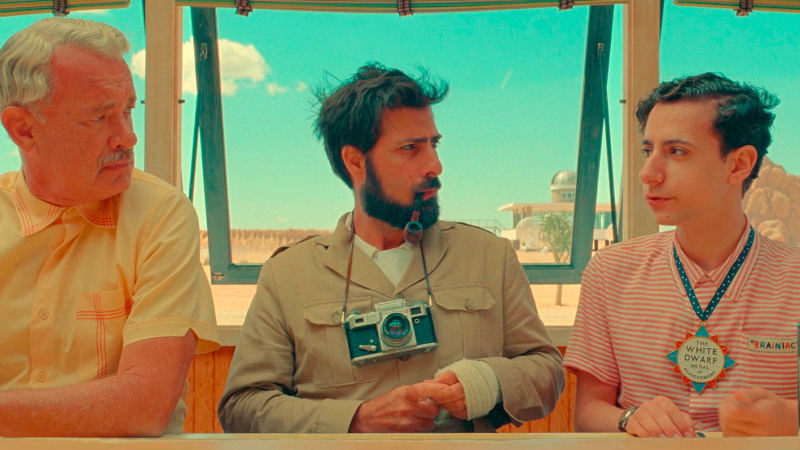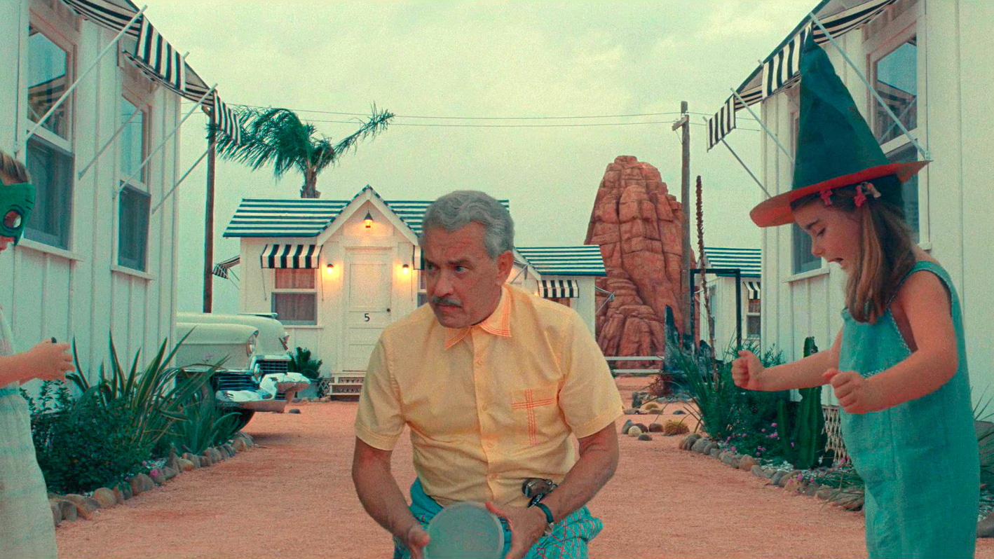 Кого же, спросите вы, здесь сыграл Билл Мюррей, постоянный актер Уэса Андерсона, сыгравший у режиссера в девяти фильмах (больше сыграл только Джейсон Шварцман)? Конечно же, он должен был играть Стэнли Зака, тестя Оги. Но Билл заразился коронавирусом, и на роль Зака режиссер пригласил Тома Хэнкса, который, конечно же, этого персонажа отыграл просто блестяще, а его взаимоотношения с тремя "ведьмами", маленькими внучками, уморительные совершенно.