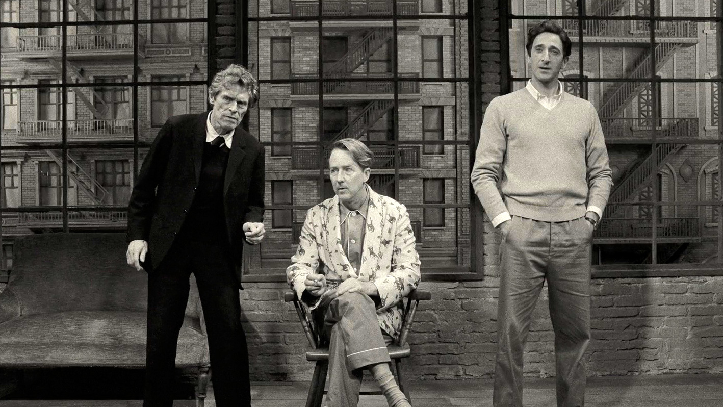 Здесь этого, как я уже сказал, нет. Телепередача о спектакле введена ради буквально двух неплохих хохм с ведущим, постановка пьесы содержит один классный эпизод с режиссером и его почти бывшей женой, и пару якобы многозначительных, но на самом деле не слишком самодостаточных эпизодов с литератором, преподавателем актерского мастерства и актерами, где очень нарочито повторяют мантру "Ты не сможешь проснуться, если не уснешь".