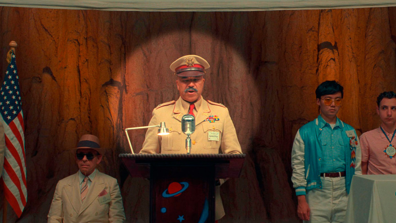 Ведущий (Брайан Крэнстон) в специальной телепередаче рассказывает нам о театральной постановке "Астероид-сити", которую режиссер-новатор Шуберт Грин (Эдриен Броуди) ставит по пьесе легендарного драматурга Конрада Эрла (Эдвард Нортон).