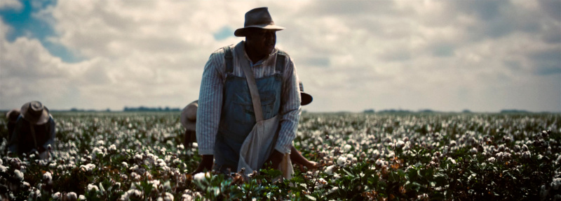 Картина начинается в таком по-хорошему олдскульном стиле южной готики. Американский юг, хлопковые поля, живущее в жуткой нищете чернокожее население: большинство из них работают на плантациях, где им даже денег не платят, вместо этого выдавая какие-то бумажки, которые они могут отоварить в магазинах, принадлежащих плантациям.