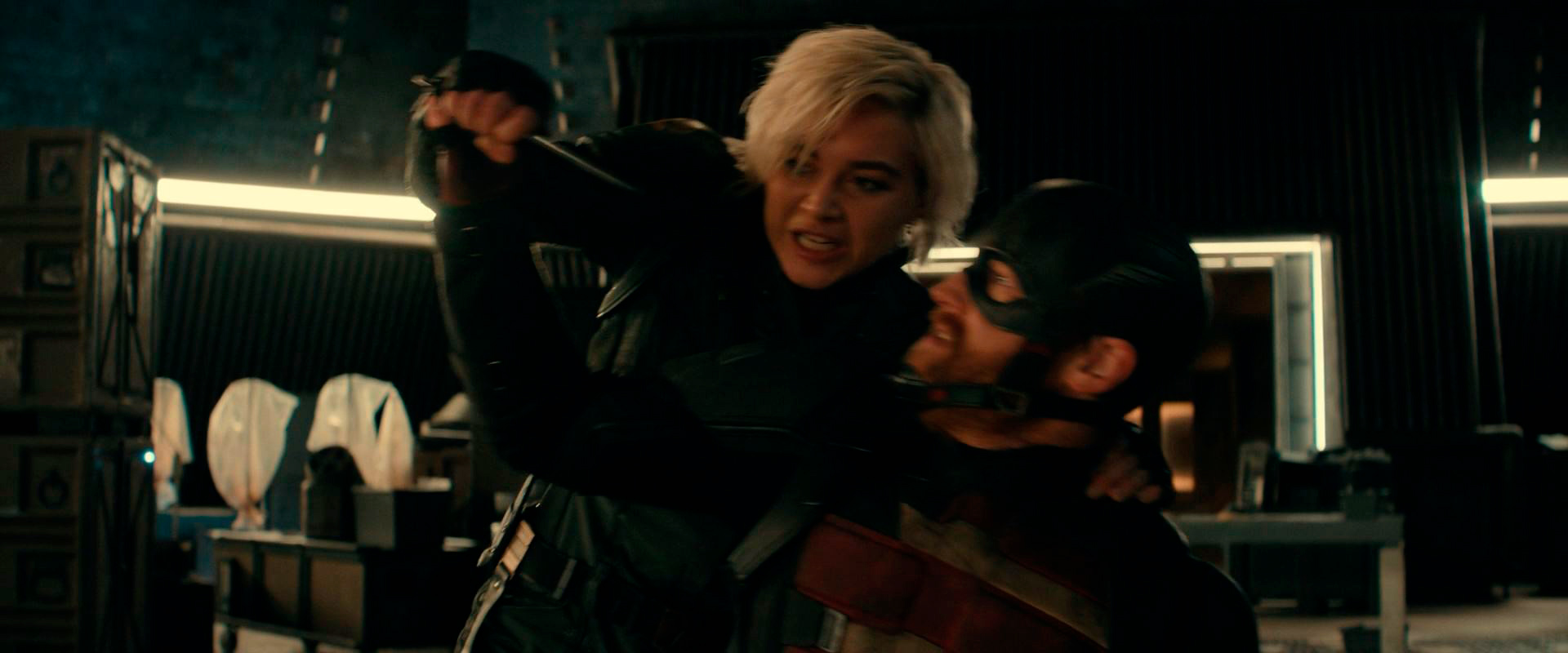 Флоренс Пью, которая, как ни крути, здесь все-таки играет первую скрипку, очень понравилась. Она хорошая актриса, а ее Черная вдова - персонаж хотя и боевой, но имеющий склонность к рефлексии. Ей не нравится то, чем она занимается, у нее были очень тяжелые детство и юность, она попала в конкретный замес, и теперь из всего этого пытается выбраться, действуя в команде таких же неудачников.