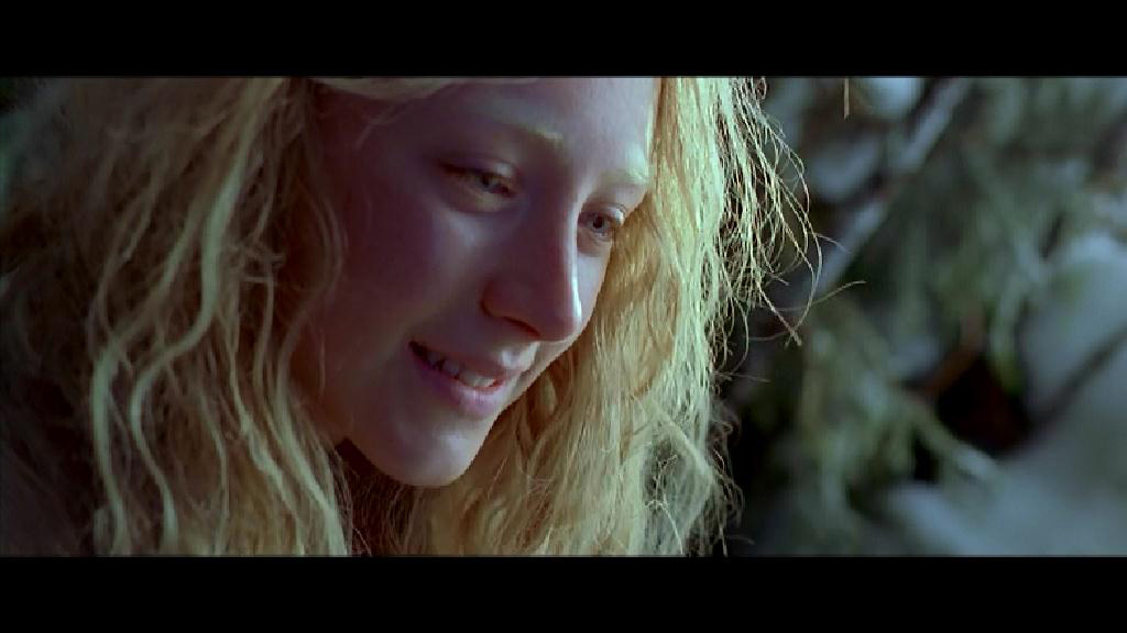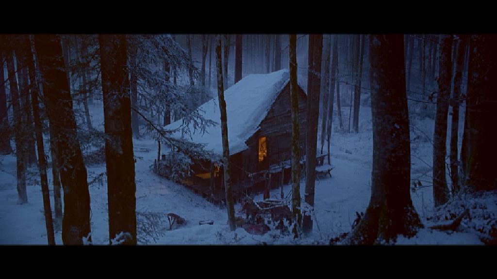 В избушке Ханна читает сказки братьев Гримм - в фильме немало аллюзий к этим произведениям, особенно в конце, когда Ханна изображает Красную Шапочку, а из Серого Волка выходит вовсе не бабушка, а совсем наоборот - страшная ведьма.