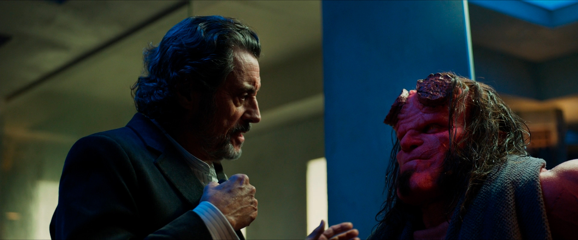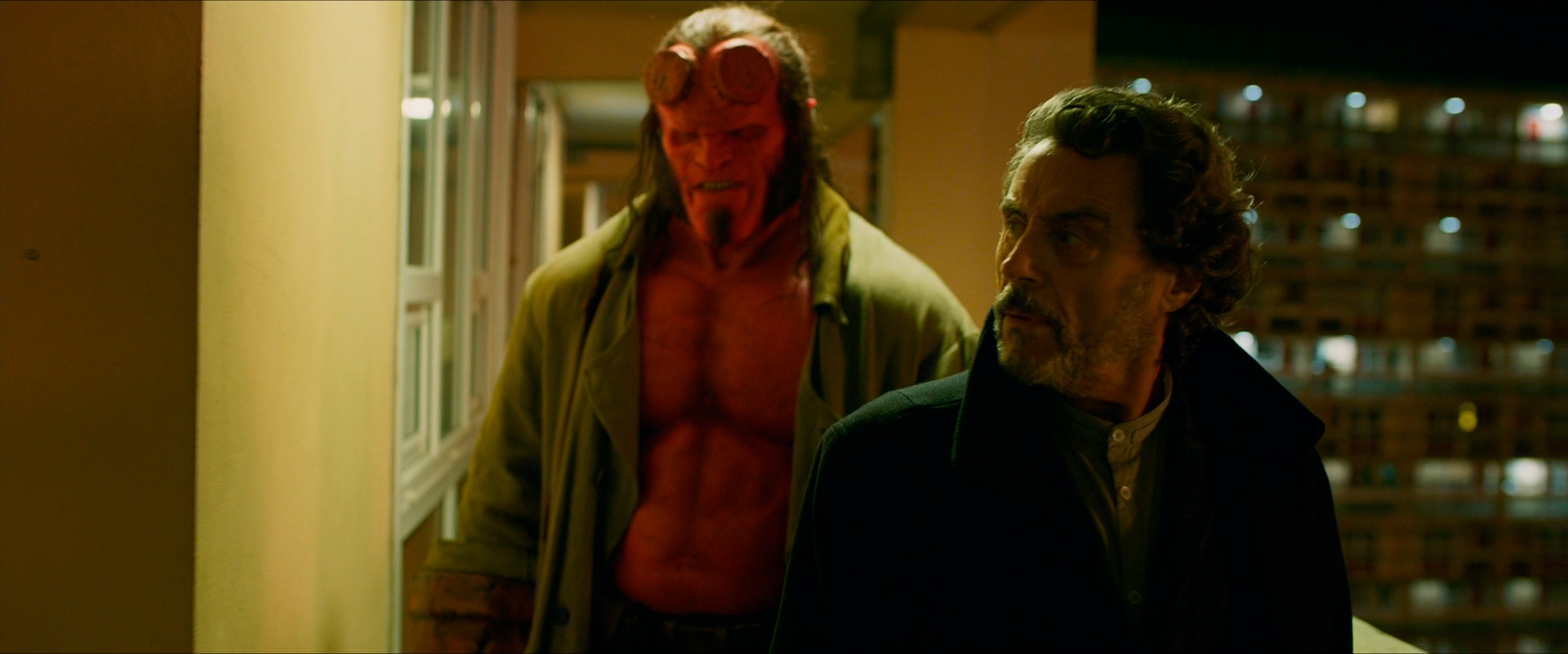 Что там по актерским работам? Дэвид Харбор (шериф из "Очень странных дел") в роли Хеллбоя - вполне неплох в рамках имеющейся концепции. Понятно, что он не такой обаяшка, как Хеллбой Перлмана, но тут, извините, такой задачи и не стояло: он должен был быть страшный и брутальный - он такой и был.
