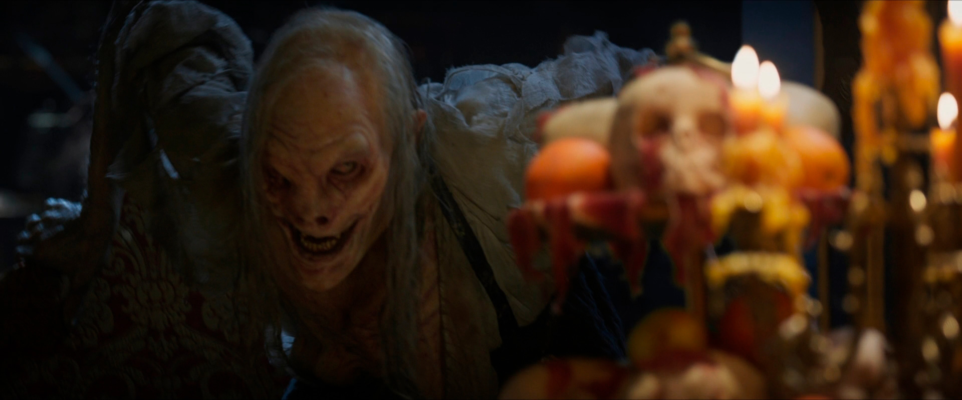 Уровень безбашенности Маршалла особенно хорошо продемонстрирован на реально леденящем душу существе под названием Баба-яга! До такого даже Гильермо дель Торо не додумался (я сейчас не о "Хеллбое", а о "Лабиринте Фавна"), который на самом деле тоже большой мастер создавать пугающих монстров, вылезающих у него из каких-то очень потаенных глубин подсознания. Но тут - это просто что-то с чем-то! На сцене с поцелуем Бабы-яги я был вынужден остановить картину и минут пять отходить, любуясь картинкой десктопа Windows XP как символа спокойствия и умиротворенности.