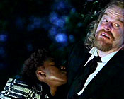 Зато второстепенные персонажи, которых не стали делать ангелоподобными, оттянулись вовсю, и именно в них, на мой взгляд, заключаются главные плюсы фильма. Лучше всех - это, конечно, Руби в отличном исполнении Рене Зельвегер. Раньше эта актриса мне не нравилась нигде. Честно говоря, просто раздражала - даже в "Чикаго" и "Дневнике Бриджет Джонс", хотя за эти роли ее весьма хвалила критика. Но здесь эта Фрося Бурлакова - просто блеск. Отличный персонаж, хорошо задуманный и весьма колоритно сыгранный. Правда, я уже говорил о том, что характер Фроси со сценарной точки зрения также сделан несколько топорно, но, с другой стороны, зачем ожидать от деревенской тетки тонкости чувств, правильно? У нее все простое, как правда: вслух ругаем, в глубине души - нежно любим. В общем, понравилась нам с Бубликом Рене Зельвегер, понравилась, однозначно. Не знаю, насколько эта роль действительно заслуживала Оскара (который Рене за нее получила), но сыграно здорово - тут не поспоришь.