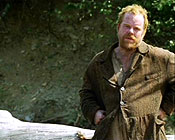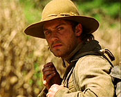 Дальнейшие события, в общем, легко можно предугадать. Инман сталкивается с ужасами военной мясорубки, получает серьезное ранение, а лежа в госпитале понимает, что не пошла бы вся эта война к такой-то матери, после чего дезертирует и отправляется в далекий путь к своей Холодной горе и своей Аде, не зная толком, ждет она его еще или нет. Инман, как Одиссей, в пути встречает много самых разнообразных людей: странного священника преподобного Висея (Филип Сеймур Хоффман), предателя, заманивающего дезертиров и продающего их властям, девушку, перевозящую нашего Одиссея с приятелем через реку, загадочную лесную старуху, спасающую Инману жизнь, молодую женщину с ребенком (Натали Портман) без мужа, которую Инман спасает от солдат, и так далее. Короче говоря, по пути домой Инмана ждет много страшных приключений.