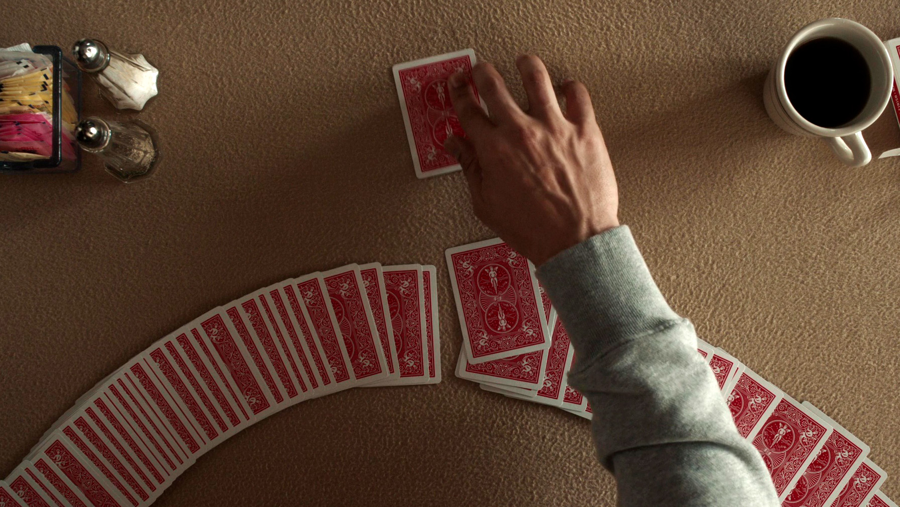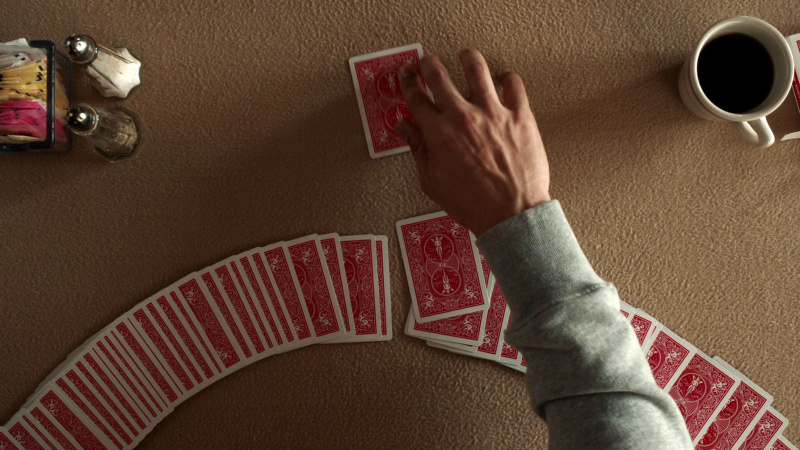 Оригинальное название картины The Card Counter, то есть "считающий карты". Подсчёт карт - методика, позволяющая не то чтобы всё время выигрывать в блек-джек, но, скажем так, несколько повысить вероятность выигрыша. О данной методике рассказывалось в фильме "Двадцать одно" (довольно слабом, на мой взгляд, фильме), который был посвящён группе студентов Массачусетского технологического института, обставляющей казино на очень солидные суммы.