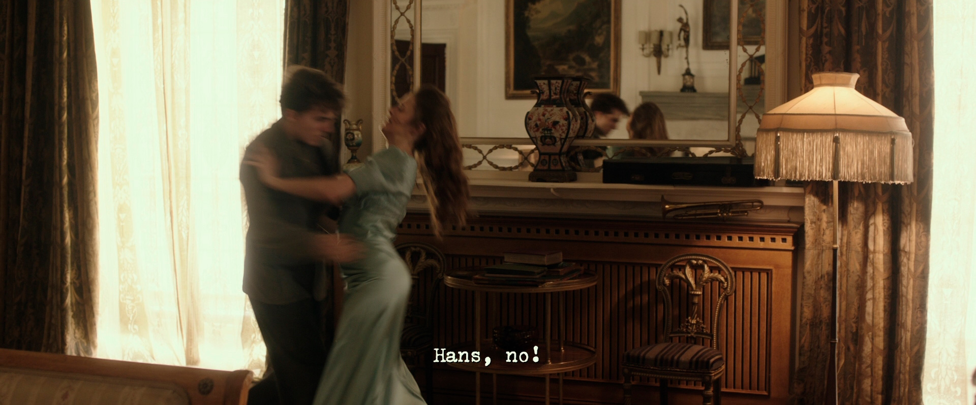 Как-то раз Ханс пришел раньше времени и ему пришлось ждать Лили внизу. В соседнем зале три сестры Лили дурачились и танцевали. Одна из сестер, Ханси, предложила Хансу потанцевать с ней. Ханс в танце начал нагло лезть к девушке с поцелуями, и сестры на него накричали. Тогда Ханс оторвал у девушки подол ее шелкового платья. Сестры совсем возмутились и велели Хансу идти заниматься с Лили.