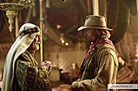 В пустыне Фрэнк знакомится с прогрессивным шейхом Риядхом. Тот хорошо образован, обожает читать книжки про индейчиков и смотреть комиксы. Дочурка Риядха Джазира (Зулейка Робинсон) тоже получила хорошее образование и, вопреки законам и традициям арабов, умеет стрелять и скакать на лошадях. Ну, просто шейх хотел мальчика, а родилась девочка. Дочурку назвали Раиса Джазира и учили всяким мальчиковым премудростям. Вообще, у Риядха раньше было штук пять-шесть сыновей, но все они сгинули - кто в боях, кто в этих скачках.