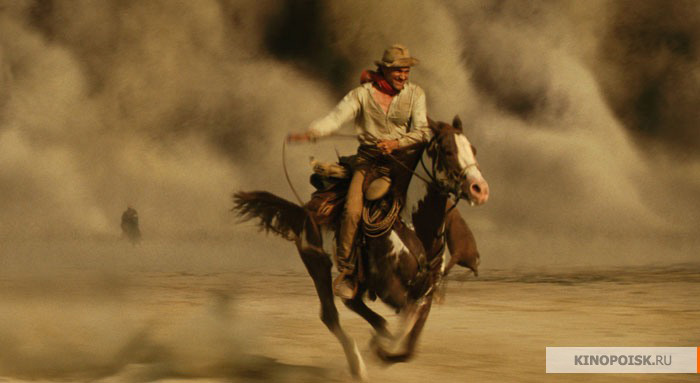 Впрочем, со спецэффектами тут ожидаемо все вполне неплохо - в картину вбухали аж сто миллионов при полном отсутствии звезд. Пустыня, песчаная буря, туча саранчи, скачки и тонны лошадей, красивые планы, завораживающие картинки и даже высосанные сюжетно из пальца леопарды - тоже нарисованы были впечатляюще.