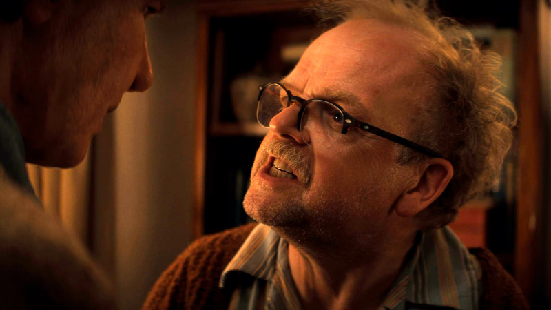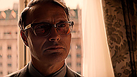 Миккельсен мог бы выдать инфернальное зло, а мог - "сильно заблуждающегося идеалиста" (фашизм с человеческим лицом звучит не странней, чем благословенное царство Дормамму). Имеем - ни рыба ни мясо. И да, этот человек-кремень, ловко крутившийся между всеми жесткими "башнями" - и нацистов, и американцев - собравший собственную клику (отдельный тупой вопрос - как фбр, которые ЗНАЮТ кто он, это позволили, приставив одну беспомощную девку? idiot plot как всегда) - в самый ответственный момент - о котором он ПРЕДУПРЕЖДЁН за минуту - впадает в ступор.
