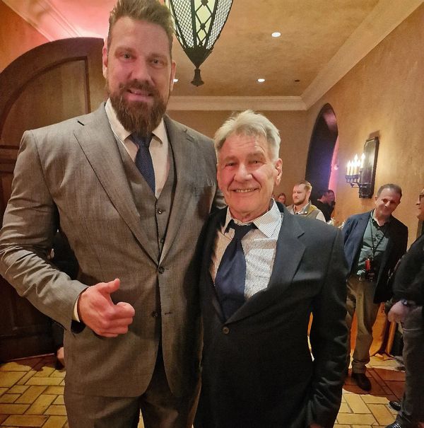 Итан Айсидор этого подростка Тедди сыграл вполне неплохо, но сам персонаж до Коротышки из второго фильма по харизме явно не дотягивал. Но зато именно ему выпала честь разобраться с огромным подручным главгада, которого сыграл нидерландский бодибилдер и актер Оливье Рихтерс, чей рост - два метра восемнадцать сантиметров: вот они с Харрисоном Фордом (фото из Инстаграма Рихтерса).