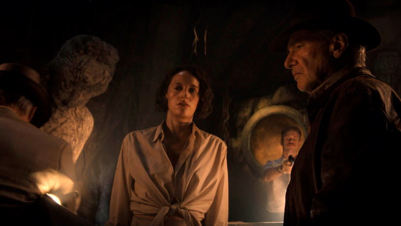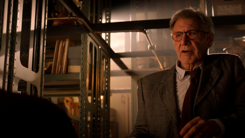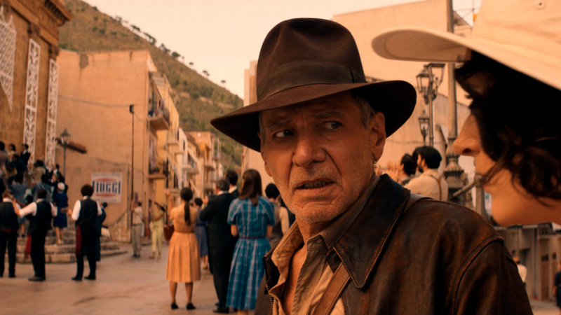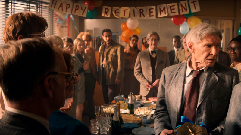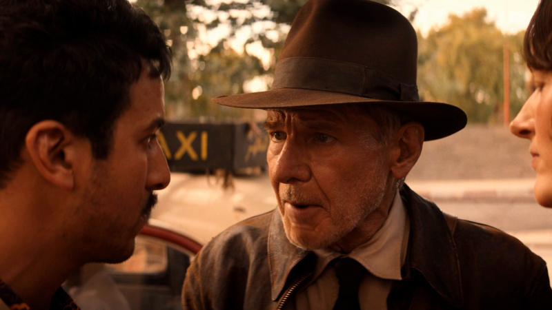 Что у него из всего этого получилось? Ну, прежде всего, нужно понимать, что это - прощание с Индианой Джонсом. Это не только никак не скрывается, но и прямо-таки подчеркивается: перед нами эпилог истории боевого археолога. Точно такое же прощание, как прощание с Росомахой в "Логане" и прощание с Бондом в "Не время умирать". И, кстати, во всех трех случаях это было сделано вполне достойно: никто не пытался делать вид, что Инди-Логан-Джеймс еще зажгут, им просто обеспечили ностальгичный, но необходимый уход.
