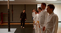 И, в общем, хорошо видно, с какой иронией сам постановщик относится и к этому культу брутальной маскулинности, и ко всяким ритуалам, неукоснительного соблюдения которых требует Сенсей, особенно учитывая то, кем этот Сенсей в конце концов оказался. Там, конечно, интересно было бы поговорить о том, почему и как он дошел до жизни такой (для этого в картине есть определенные подсказки, которые поначалу мало о чем говорят, но потом выстраиваются в четкую картину), но мы этого не будем делать, чтобы не спойлерить тем, кто этот фильм, возможно, захочет посмотреть.