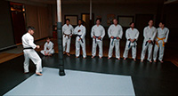 В какой-то момент, проходя по улице, Кейси наткнулся на додзё - зал для занятия боевыми искусствами. Внутри додзё человек в черном кимоно с черным поясом проводил тренировку по карате. После окончания тренировки Кейси спросил тренера, которого все называли Сенсей (Алессандро Нивола), можно ли ему присоединиться к группе и начать тренировки, на что Сенсей ответил утвердительно.