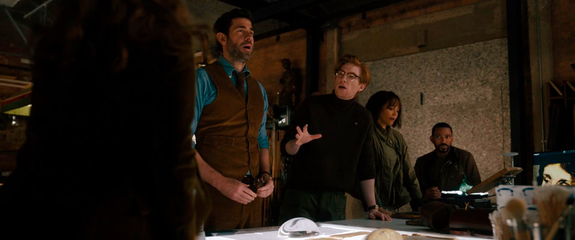 Здесь Красински старается вовсю: по полной включает обаяние, которое у него, безусловно, есть, играет бровками, делает глазки. Но он не Индиана! Типаж не тот! Не вытягивает этого персонажа Красински совершенно.