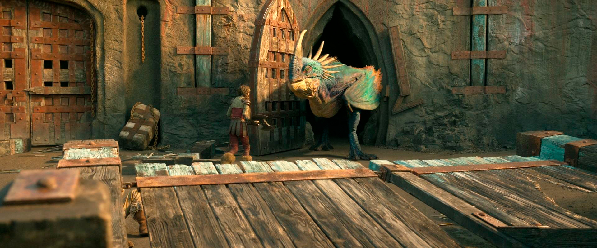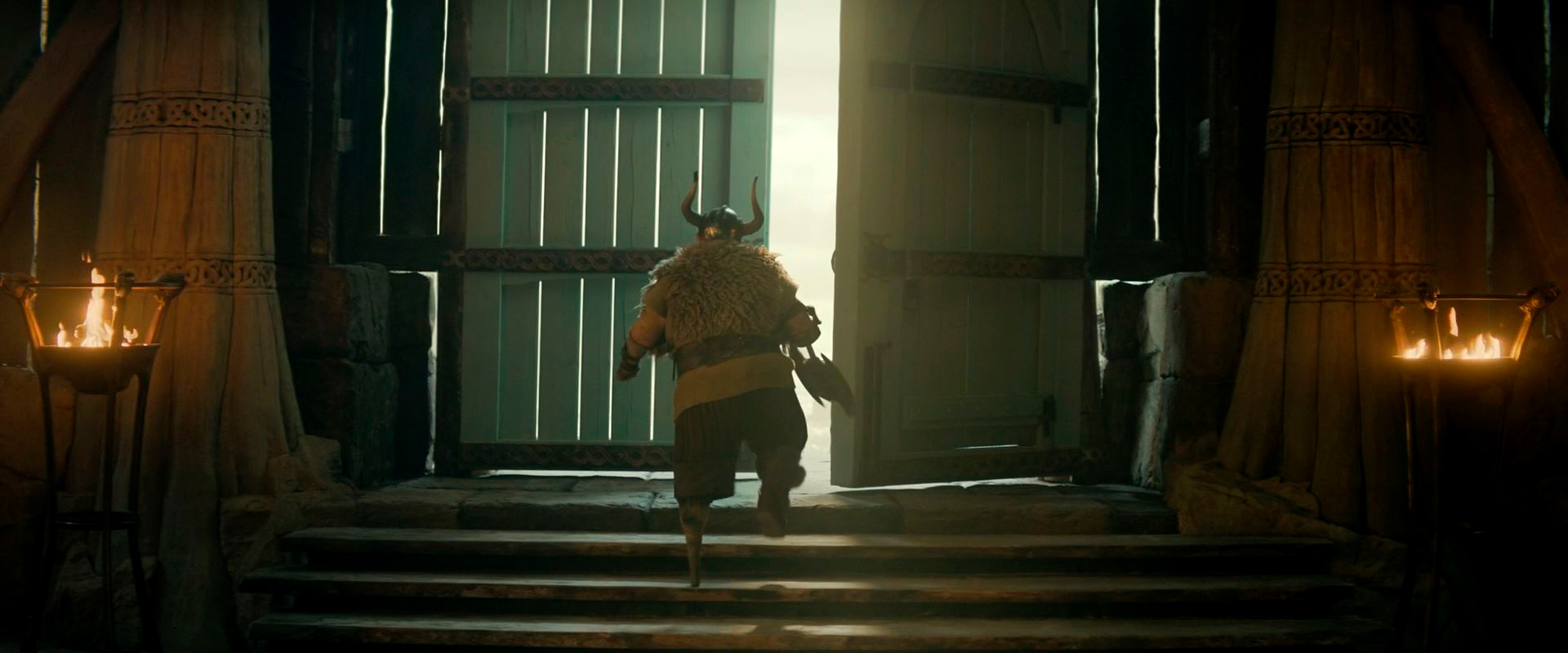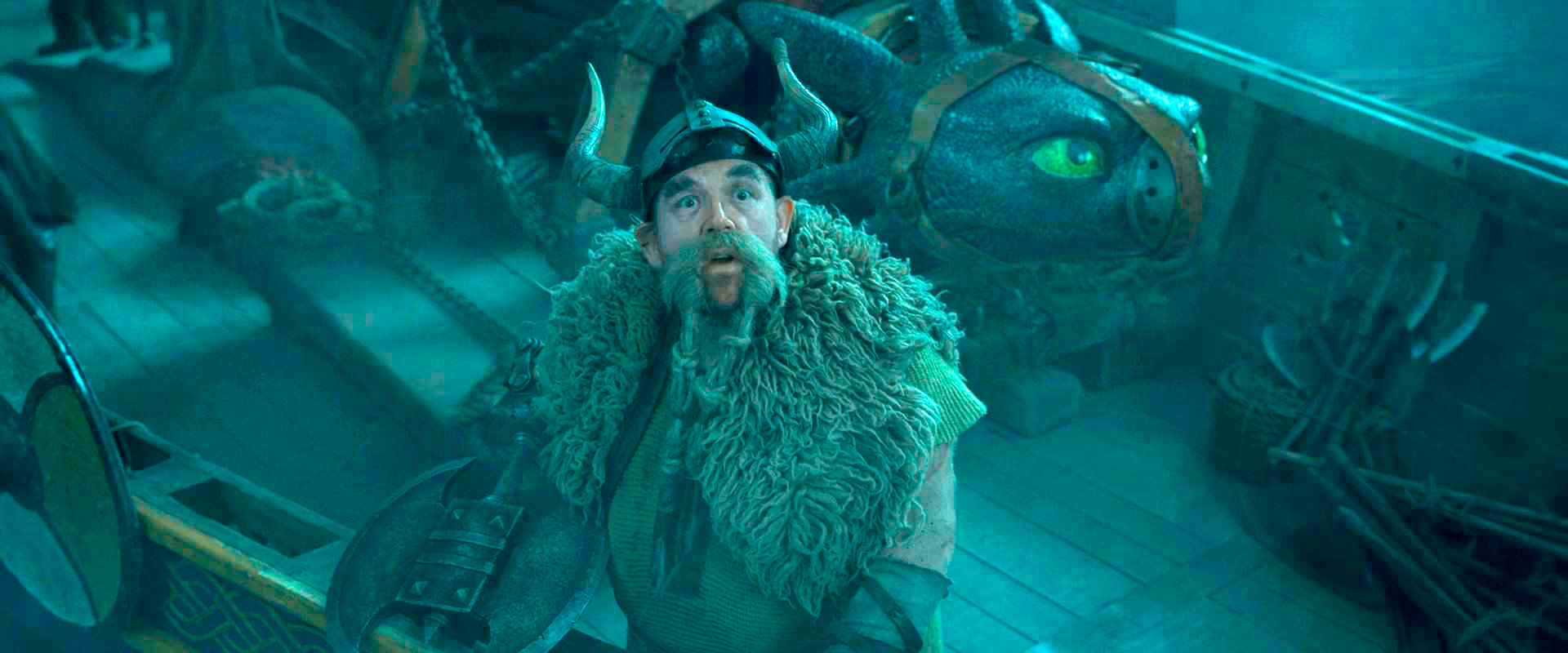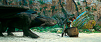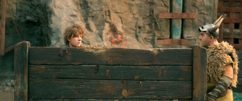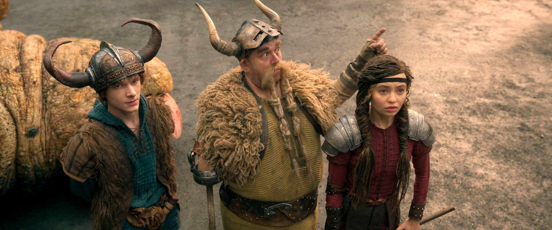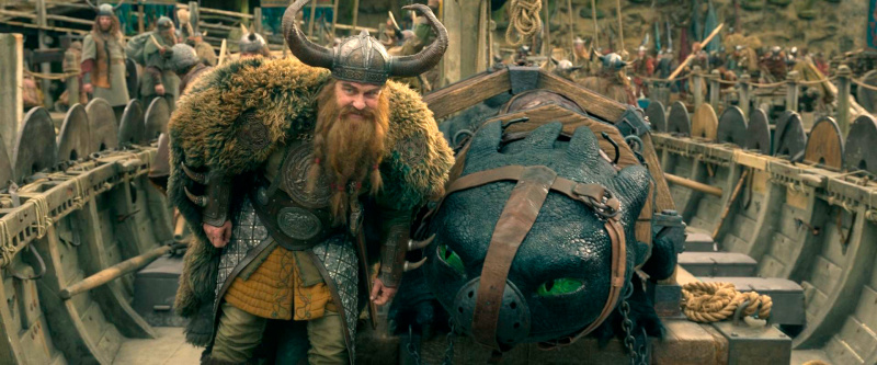 Да, с одной стороны, новый фильм четко следует сюжету первого фильма - кстати, снимал его тот же постановщик Дин ДеБлуа, который был режиссером всех трех соответствующих анимаций, - иногда буквально покадрово, но он идет на полчаса больше и в нем добавили развития персонажей, особенно Иккинга с Астрид (Нико Паркер) и остального молодняка, тренирующихся под руководством Гоббера (в книге он Gobber the Belch - у всех викингов есть грубоватые клички, - а в российском варианте его назвали Плевакой, что, в общем-то, сойдет как вариант перевода).