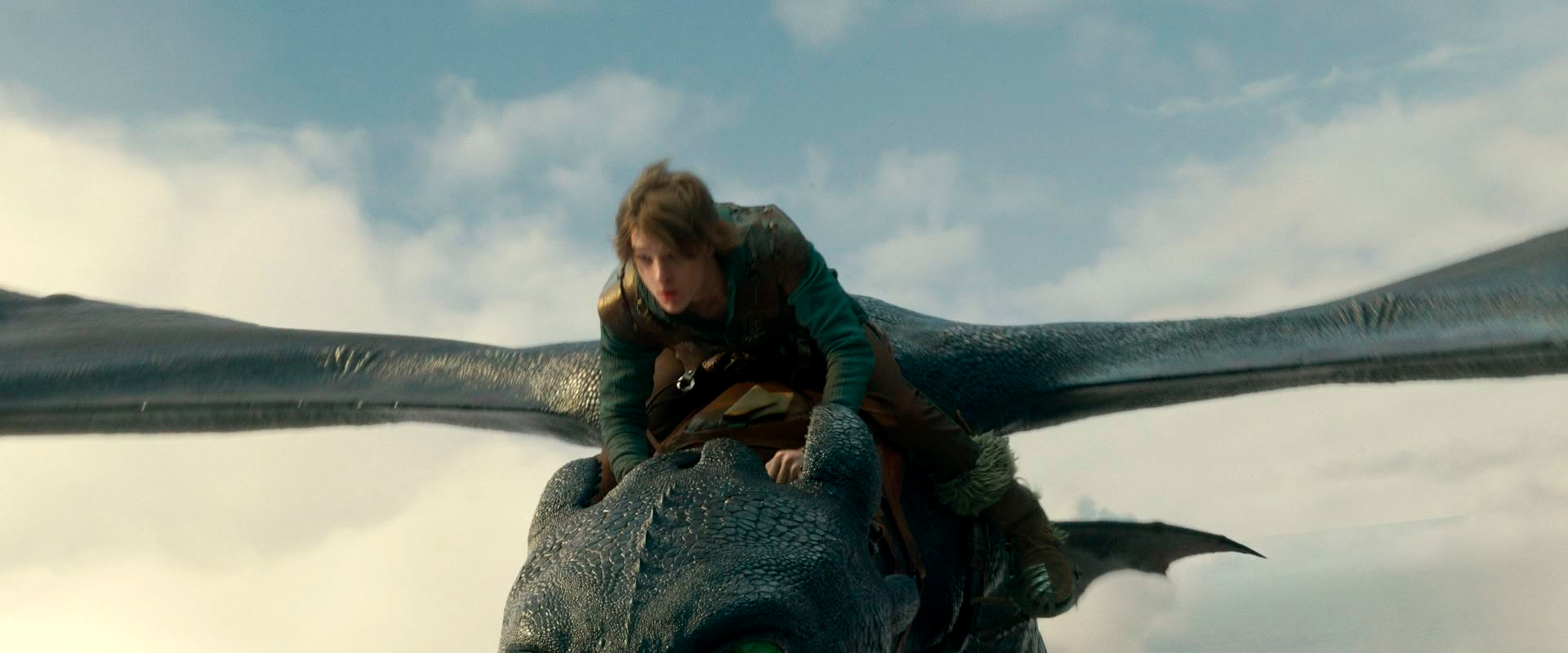 Визуальный уровень фильма - впечатляющий. Сосуществование нарисованных драконов и живых актеров смотрится поразительно реалистично, а уж полеты персонажей фильма на драконах, особенно первые вылеты Иккинга на Беззубике и Иккинга и Астрид на Беззубике - там прям захватывает дух.