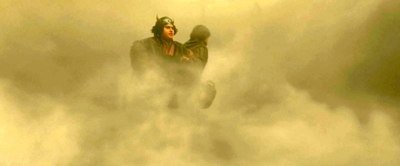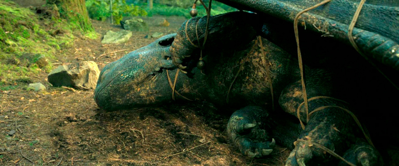 Вот, собственно, почему я и принял переснятую версию: она повторяет практически покадрово мультипликационый оригинал, но привносит тот самый реализм, который заставляет наш мозг всерьёз бояться и сопереживать героям. Я понимаю, что при съёмке не пострадало ни одно животное, но вся эта жесть с падениями, огнём, втыкающимися шипами, всё предельно реалистично.