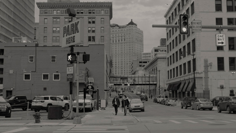 Картина снята в черно-белой гамме, что поначалу несколько удивляет. Потому что тут вроде как нет никаких предпосылок использовать подобный прием. Речь идет о наших днях, персонажи используют современные смартфоны, так зачем вообще черно-белая палитра? Понятно, почему  такие картины, как "Манк", "Артист", "Рома", "Холодная война", "Маяк", черно-белые: там это четко обусловлено художественной задачей.