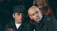 По замазкам (это я, пардон, от лагерного стиля еще не отошел) фильм представлялся, скорее всего, барахлом: взяли Безрукова в его звездной роли Саши Белого, взяли Дюжева в его звездной роли Саймона из "Жмурок", смешали "Джентльменов удачи" с американским фильмом "Мы не ангелы", влепили штук пять бородатых клише из старых фильмов, добавили российского колорита, ну и запустили с мощнейшей поддержкой первоканальных возможностей.