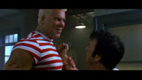 Но не буду врать, что в фильме нет хороших моментов. Они есть. Их три. Первый - история с подставой жены и ближайшего сподвижника Сейнта, которую провернул Каратель. История неплохая, хотя тоже не слишком оригинальная. Второй момент - визит Русского в лачугу Карателя. Момент, конечно, идиотичный, но рестлер Кевин Нэш, которого ради этой роли заставили обрить его роскошные длинные волосы, выглядит вполне эффектно. Чистый русский хлопец - вот, полюбуйтесь.