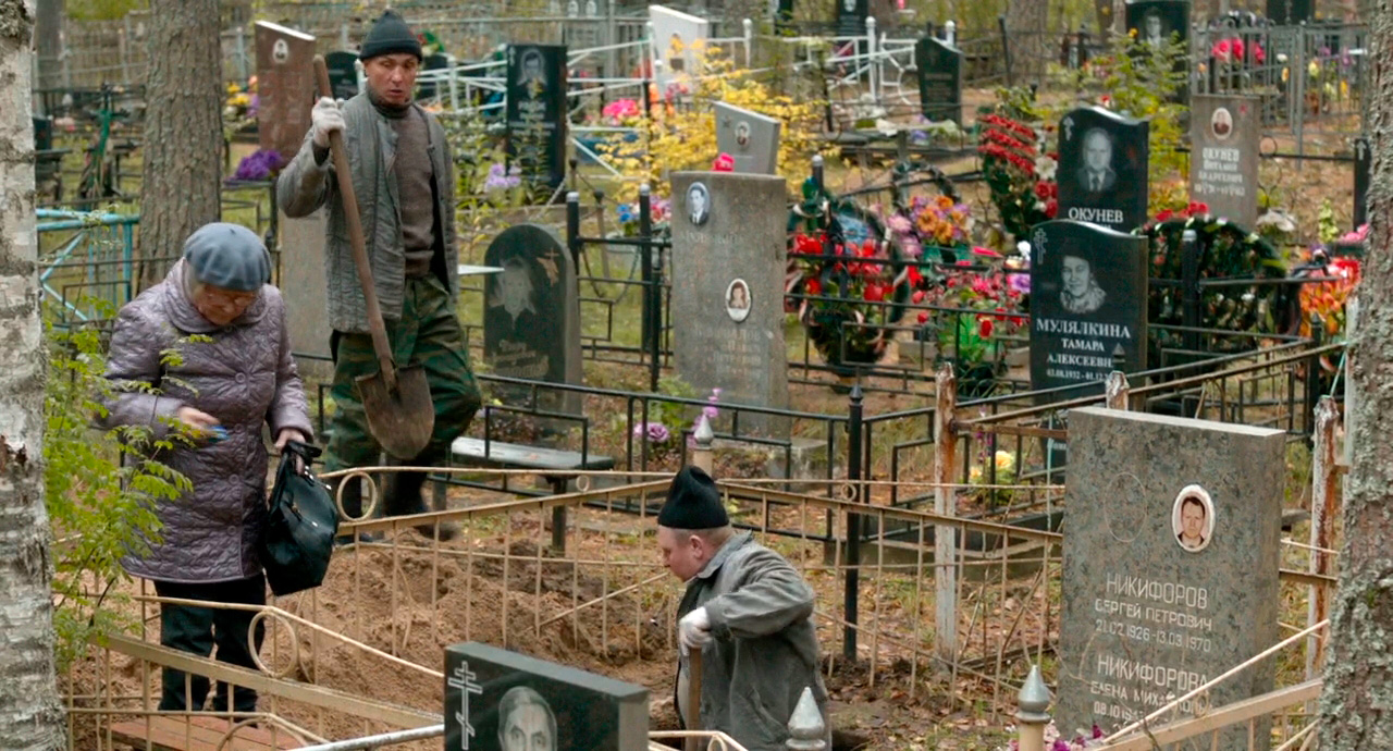 Это сатирически показанная российская бюрократия во всей своей красе – подготовка к смерти, попытки раздобыть липовые справки из морга и загса, выбор гроба – перед которой сдается всякий здравый смысл остальных персонажей.