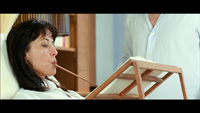 Здесь - все не так. Мюриэль находится в еще более тяжелом положении, чем Филипп: она не может даже на коляске самостоятельно передвигаться. Практически единственное ее развлечение - разговаривать с теми, кто за ней ухаживает, и читать, переворачивая страницы с помощью палочки, которую она держит ртом.