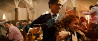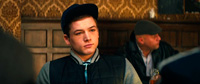 На роль парнишки-гопника, из которого требовалось сделать смертельно опасного джентльмена с прекрасными манерами, пробовали под шесть десятков молодых актеров. В результате роль досталась Тэрону Эджертону из популярного сериала "Дым", и в этом, как мне кажется, Вон не промахнулся: в стиль своего персонажа Тэрон вписался как по нотам. Он и вполне убедительно смотрится в роли этого полугопника, который внутри-то хороший, но просто попал в трудные обстоятельства, и в роли курсанта из простонародья в окружении напыщенных снобов, и в роли достойного воспитанника сэра Галахада, который вышел на передний план, имея в виду задний план томящейся в тюрьме принцессы.