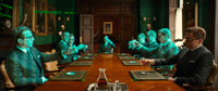 Так и что собой представляет новый фильм? Прежде всего, конечно, это типа как пародия на бондиану. Британская секретная служба (но уже негосударственная); невозмутимые агенты в безукоризненных костюмах, с безукоризненными манерами и произношением; очередной суперзлодей, который - ну, разумеется - кроме как на уничтожение всего этого мира больше ни на что не согласен; всякие хитрые спецагентские штучки и гаджеты; экзотическая телохранительница главгада с протезами на ногах (раньше был огромный мужик с железными зубами); драчки и погони. То есть все, что обычно присутствует в бондиане.