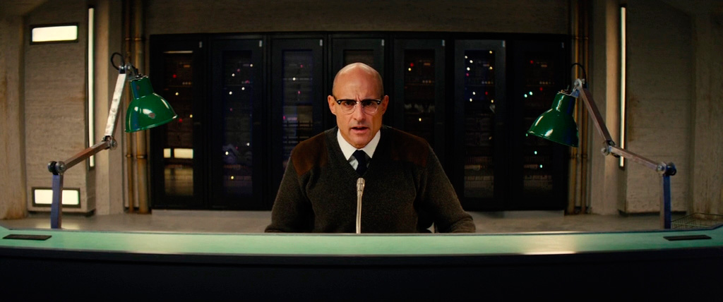 Замечательный Марк Стронг (он, кстати, по происхождению полуитальянец-полуавстриец), который до этого играл у Вона в двух фильмах, сыграл здесь наставника молодежи в Kingsman и одновременно - специалиста по всяким мудреным устройствам. Сыграл, как обычно, отлично: спокойно, невозмутимо, но с большим юмором.