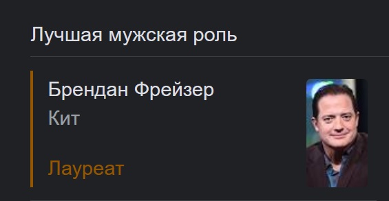 За Брендана Фрейзера я рада, мне он всегда нравился. Болею за него на Оскаре.