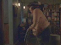 Аронофски, впрочем, попытался сделать эдакий серьезный заход с козырей, когда начал фильм с того, что Чарли пытается мастурбировать (именно пытается, так как отыскать свое хозяйство в складках жира он вряд ли сможет), глядя на гей-порно в ноутбуке, и мы с котом Бубликом подумали, что Аронофски по крайней мере здесь выйдет за какие-то собственные границы, но потом оказалось, что он пошел по очень проторенной и предсказуемой дорожке с цитатами из "Моби Дика" (ах, сравнение Чарли с китом - какая глубокая метафора, прости господи), с цитатами из Библии и предельно раздражающими своей дешевизной театрализованными эпизодами в самом конце.