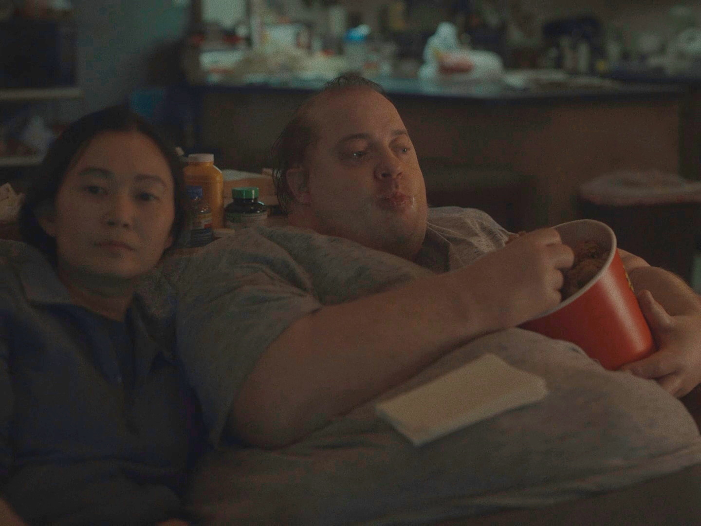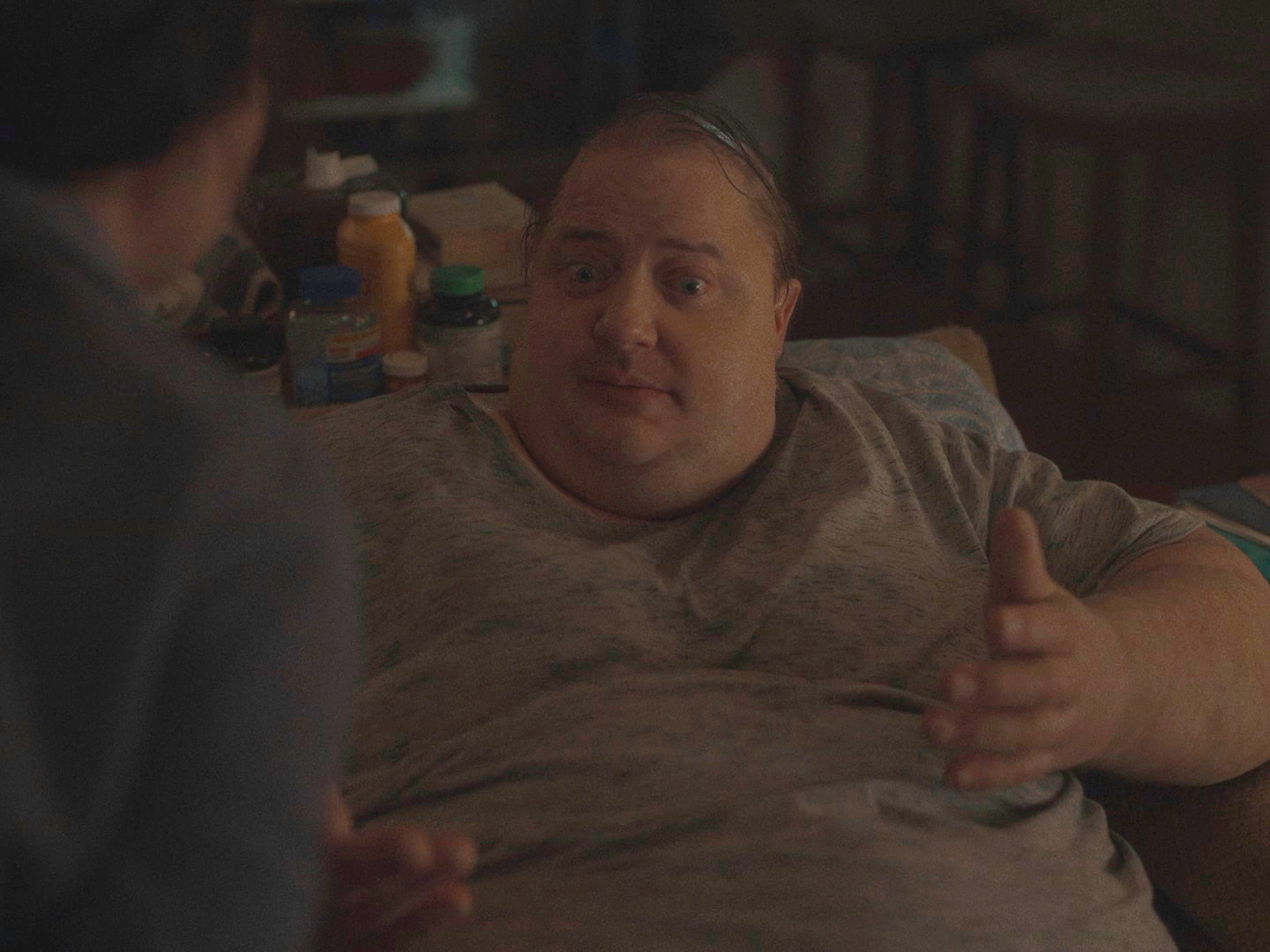 По поводу "в карикатурном ключе" - это, конечно, совершенно не так. Наоборот, состояние Чарли показано так, чтобы вызывать к нему явное сочувствие, причем показано это предельно реалистично. И если кто-то считает, что здесь что-то утрировано - поищите на Youtube ролики по запросу "600 pounds life" - вы там увидите реальные истории 300-килограммовых людей, и на это реально страшно смотреть, потому что не очень понятно - как, а главное - зачем люди себя доводят до подобного состояния?!! Но это же реально происходит, эти люди существуют, это же никак не выдумки!