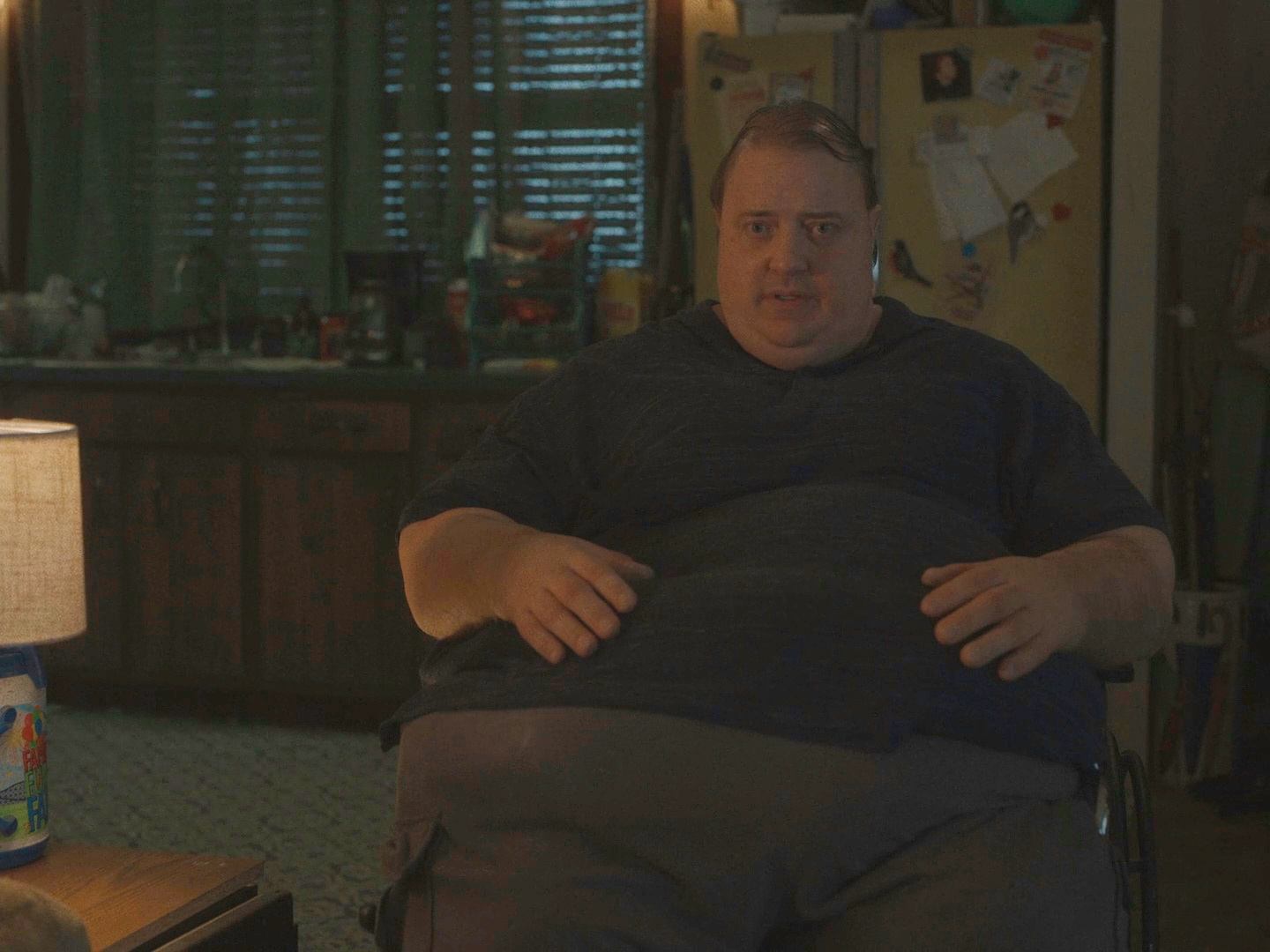В этом фильме Брендану предстояло сыграть 300-килограммового персонажа, и над этим велась очень большая работа целого подразделения разработчиков специальных протезов и гримеров, о чем можно почитать, например, вот в этой статье - "Montreal prosthetic designer describes the painstaking process of transforming Brendan Fraser for The Whale" (Монреальский дизайнер протезов описывает кропотливый процесс перевоплощения Брендана Фрейзера для фильма "Кит").