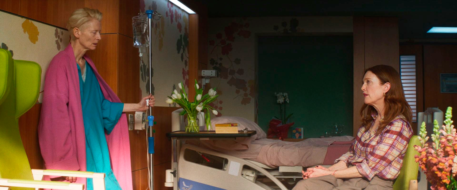 В результате у нас впечатления остались смешанные. Тема в фильме поднята сложная и болезненная, Альмодовар при этом, как большой мастер, не разменивается на дешевые манипулятивные приемы и слезу из зрителей не давит, Тильда Суинтон - великолепная, Джулианна Мур составила ей отличную пару, визуально все сделано совершенно замечательно, однако тут есть сюжетные линии, которые кажутся совершенно лишними, также чувствуется, что все это искусственным образом растянуто на полный метр, из-за чего действие периодически заметно провисает.