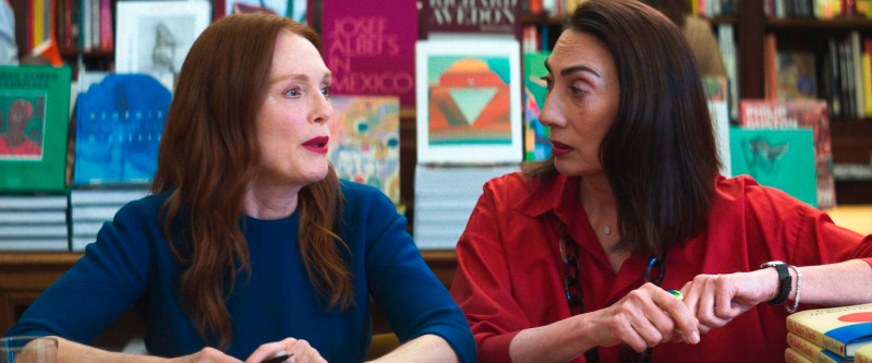 За хоть какую-то иронию отвечает, судя по всему, тренер из спортзала, куда ходит Ингрид, который "Мне бы хотелось вас обнять, но нам запрещено это делать из-за судебных исков", и персонаж Джона Туртурро, с которым когда-то Марта имела отношения, а потом Ингрид стала его любовницей: они обе отмечают, что он был когда-то пылким мужчиной, а нынче только и знает, что читать нуднейшие лекции о глобальном потеплении и о том, что планета скоро умрет - эдакий Грет Тунберг на пенсии. Туртурро, как правило, везде хорош, даже в таких ролях, но персонаж получился достаточно нелепый.