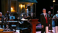 Таким образом, шоу продолжается, хотя и в последний раз, а по театру тем временем бродит загадочная и опасная красотка в белом плаще (Вирджиния Мэдсен). Кто она и зачем пришла в здание театра - совершенно непонятно, но в конце концов все, разумеется, выяснится.