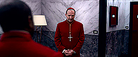 Изабелла Росселини в картине сыграла начальницу над монашками, обеспечивающими уход за кардиналами и их кормление (не окормление, а сбалансированное питание), и что-то нам подсказывало, что ее персонаж хотя бы раз выйдет на первый план и кого-то из этих мерзавцев (я, собственно, о кардиналах) обвинит, пригвоздив указующим перстом. Так оно, собственно, и произошло, и это было вполне ожидаемо.