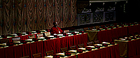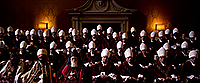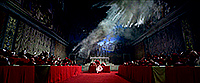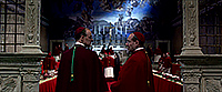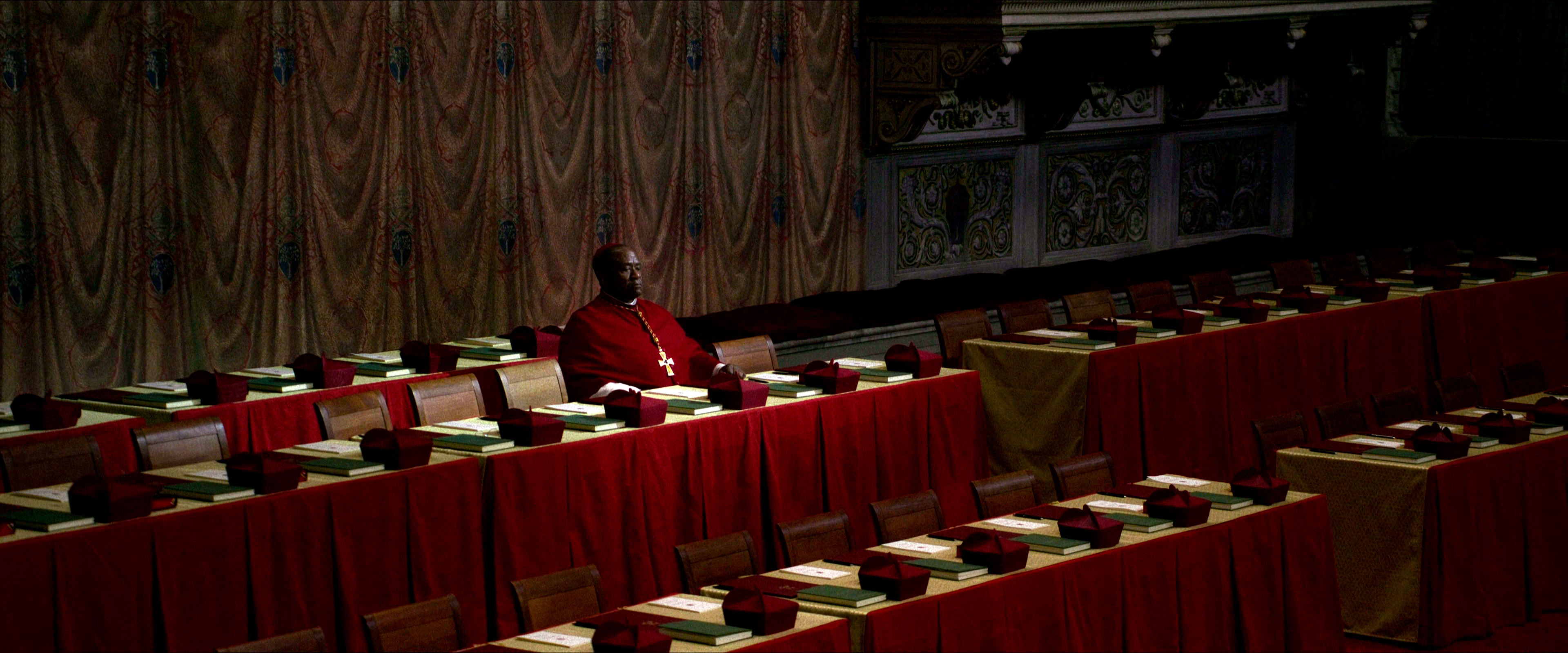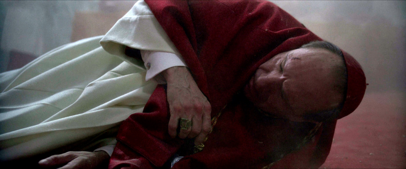Вообще надо сказать, что создатели картины очень ответственно подошли к воссозданию многих деталей. Конечно, в точности никому, кроме участников конклава, не известно, как это все проходит, но, по крайней мере с точки зрения облачений кардиналов и определенного церемониала - уничтожение кольца усопшего Папы, закрытие алой лентой его апартаментов и запечатывание их восковой печатью - все это четко показано.