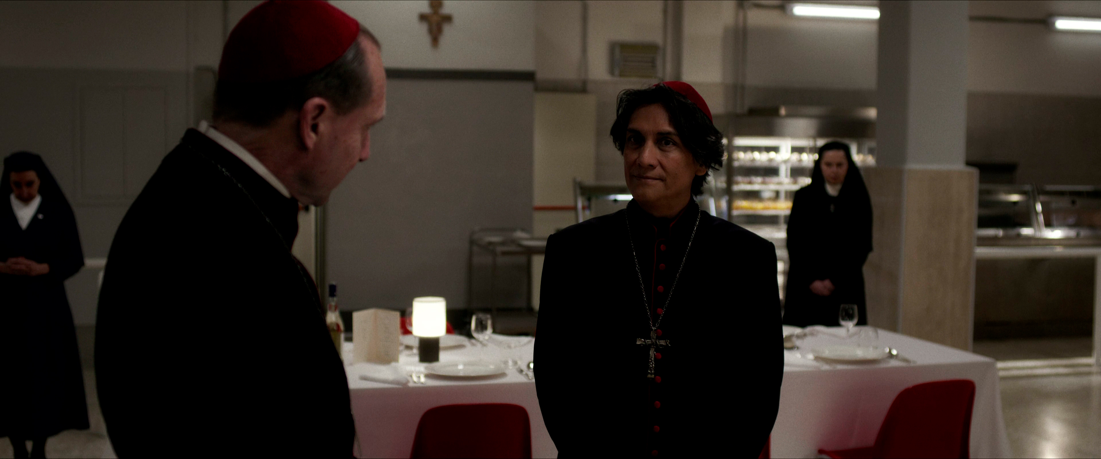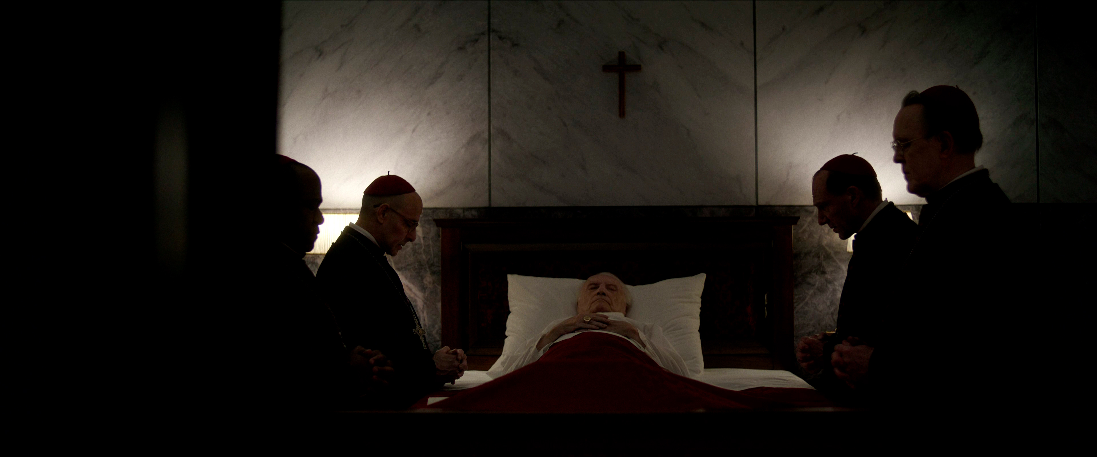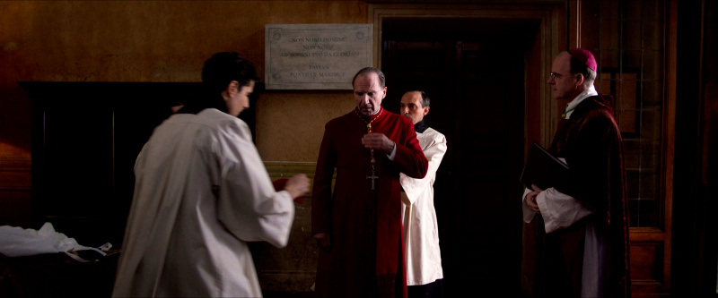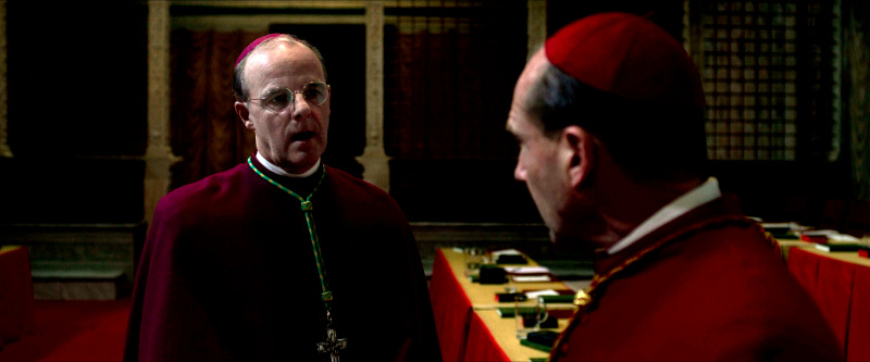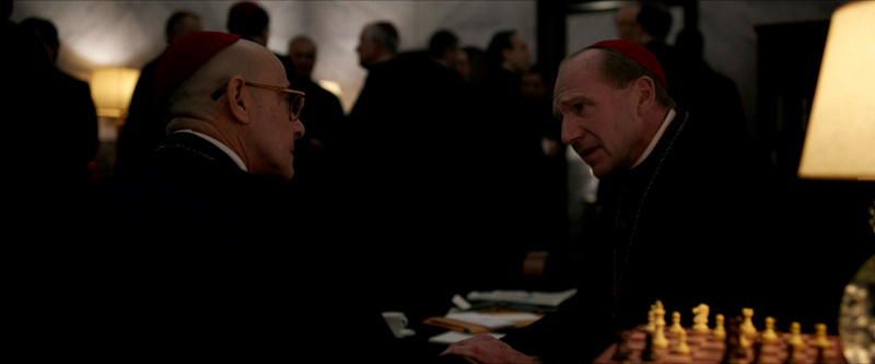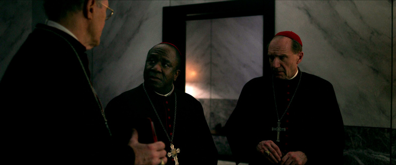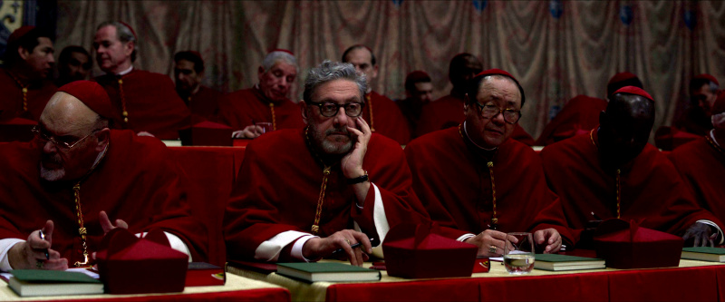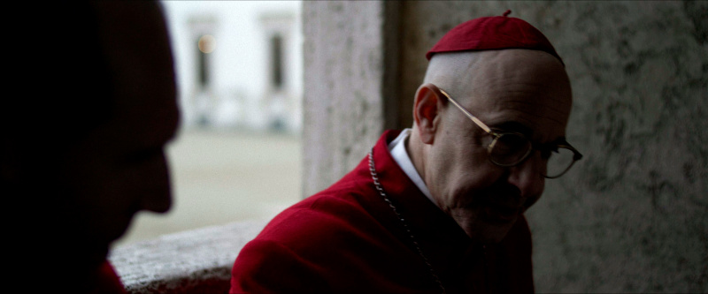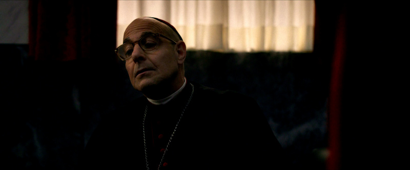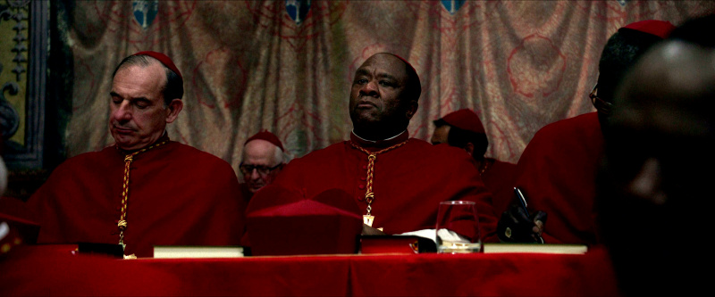 Остальным актерам - прежде всего, Стэнли Туччи, Джону Литгоу, Лусиану Мсамати и Серджо Кастеллитто - здесь толком развернуться не удалось. Как я понял из отзывов, в книге этим кардиналам, их историям и характерам уделено значительно больше внимания, но в фильме постановщик решил по полной сконцентрироваться на фигуре Тома Лоуренса, что, в общем-то, вполне объяснимо. Но все-таки мне показалось, что можно было бы немного более полно раскрыть и других ключевых участников, а то Джону Литгоу тут, по сути, практически нечего играть, а он актер очень сильный, Стэнли Туччи лишь изредка выходил на передний план, а персонаж Серджо Кастеллитто и вовсе выглядел очень примитивным упертым реакционером, что несколько снижало впечатление.