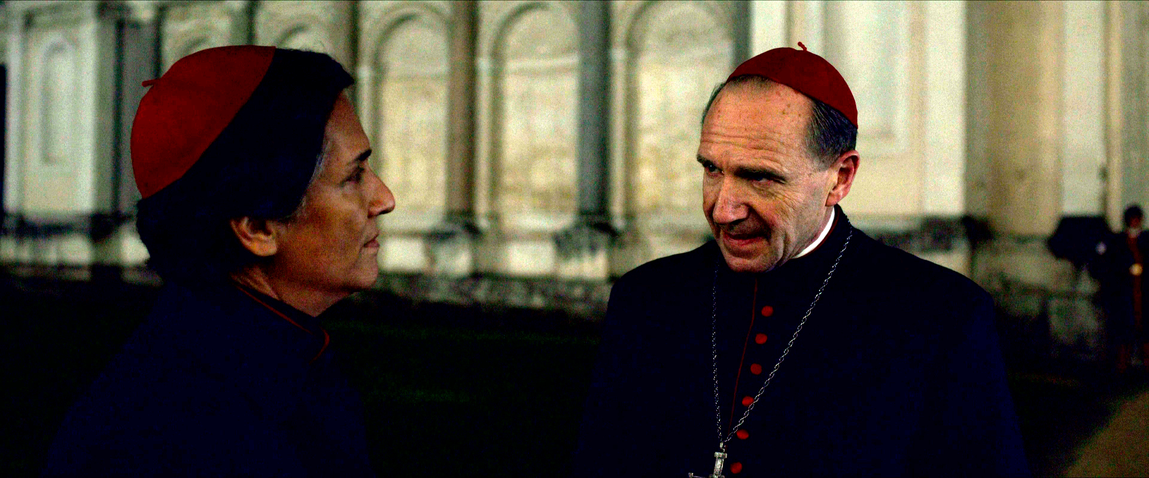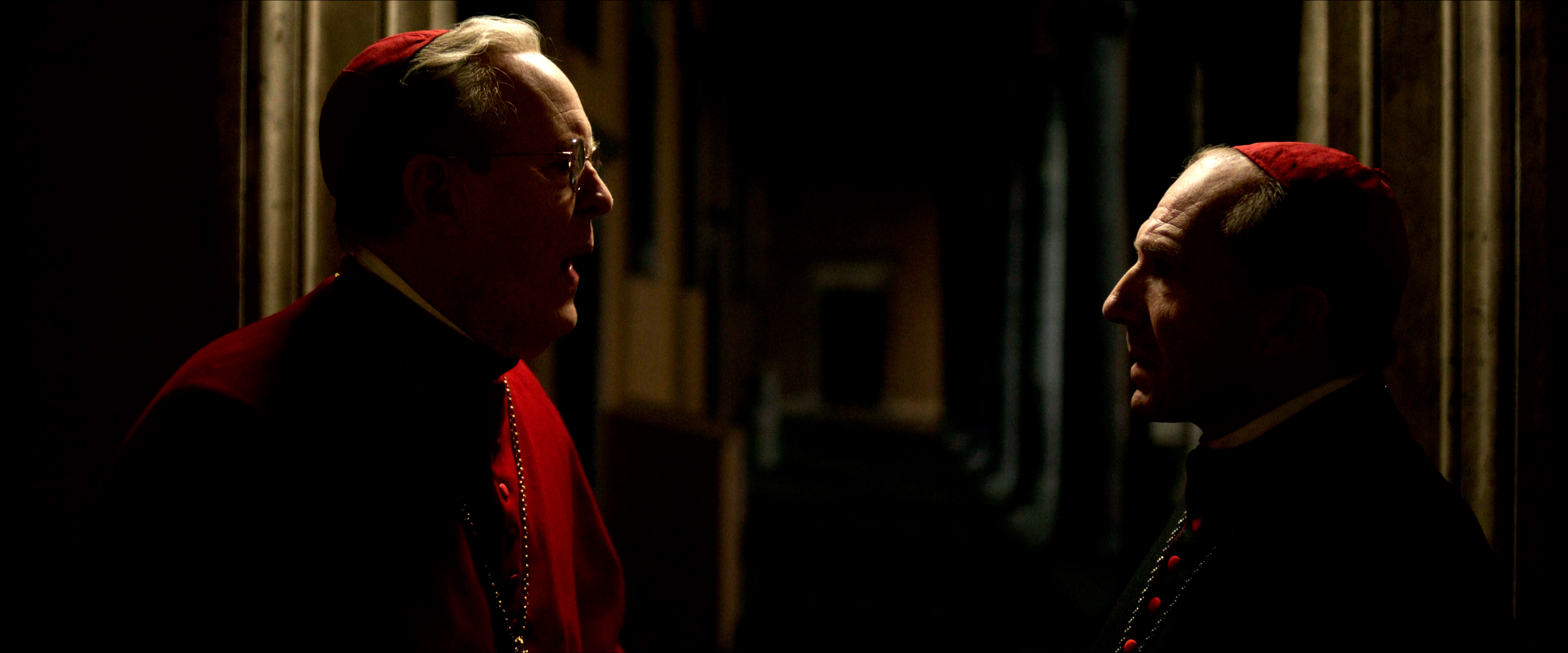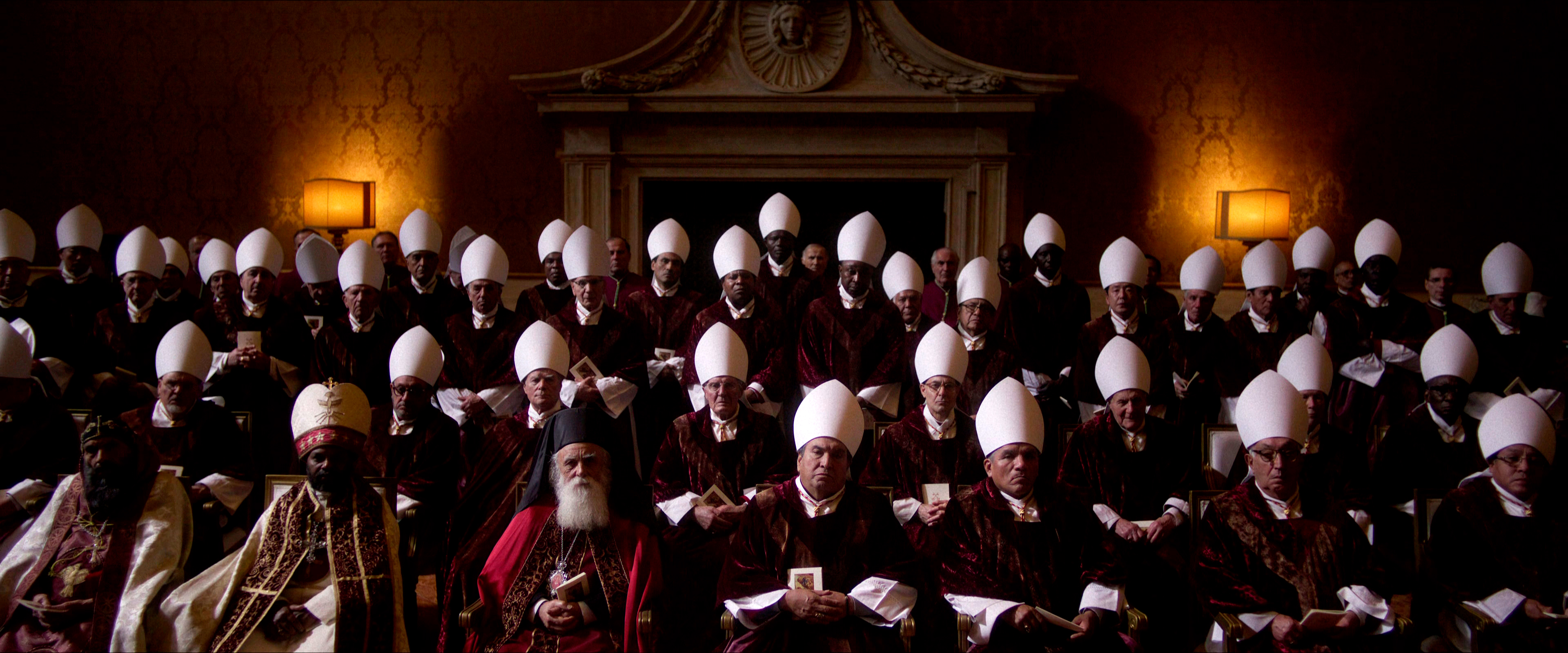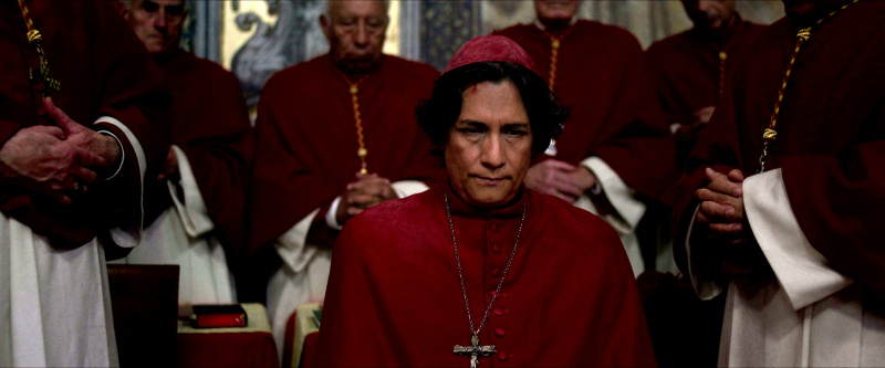 Остальным актерам - прежде всего, Стэнли Туччи, Джону Литгоу, Лусиану Мсамати и Серджо Кастеллитто - здесь толком развернуться не удалось. Как я понял из отзывов, в книге этим кардиналам, их историям и характерам уделено значительно больше внимания, но в фильме постановщик решил по полной сконцентрироваться на фигуре Тома Лоуренса, что, в общем-то, вполне объяснимо. Но все-таки мне показалось, что можно было бы немного более полно раскрыть и других ключевых участников, а то Джону Литгоу тут, по сути, практически нечего играть, а он актер очень сильный, Стэнли Туччи лишь изредка выходил на передний план, а персонаж Серджо Кастеллитто и вовсе выглядел очень примитивным упертым реакционером, что несколько снижало впечатление.