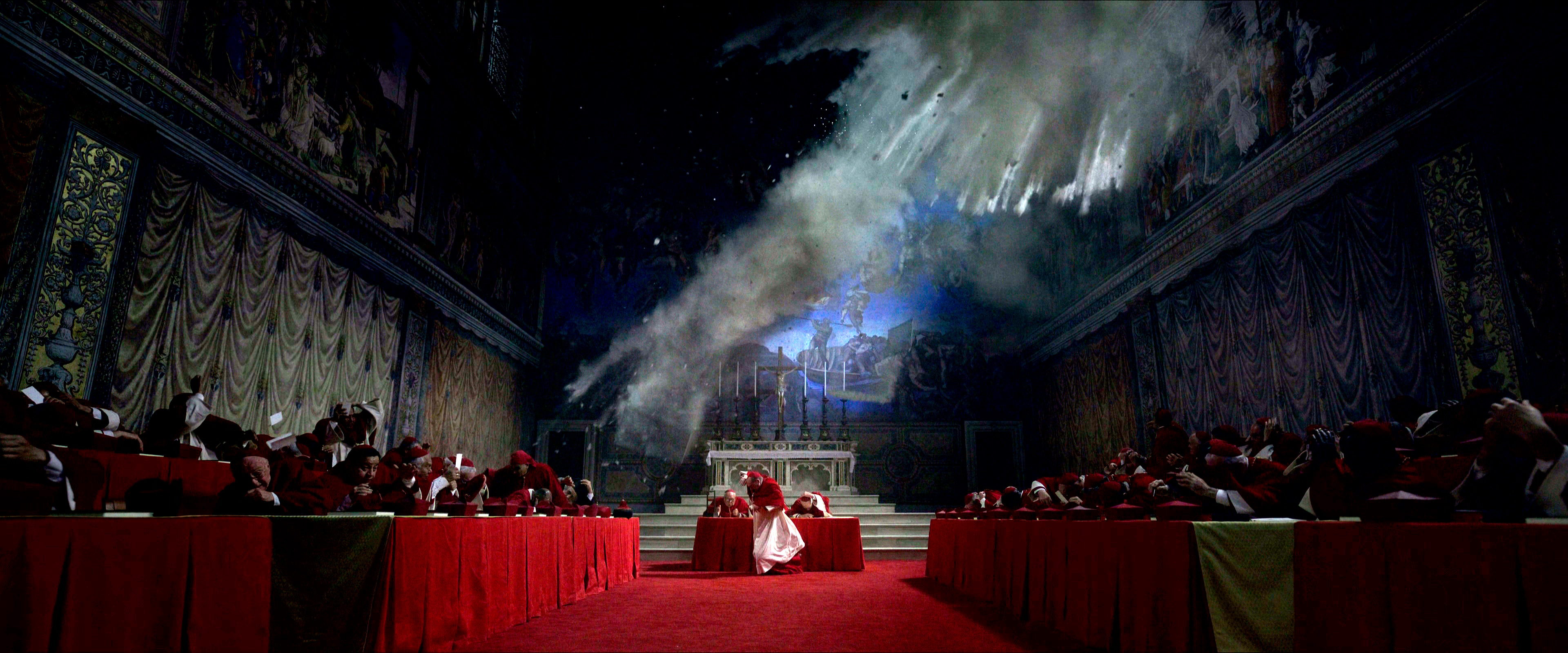Так ли этот фильм в действительности хорош? На наш с Бубликом взгляд - да, он хорош. Прежде всего, он отлично снят с визуальной точки зрения: огромные величественные помещения, ярко-красные кардинальские облачения, внутренние ватиканские галереи и площади, много мрамора, при этом все достаточно строго и несколько давяще. Впрочем, этому способствуют жесткие правила проведения конклава - окна Сикстинской капеллы, где проводят выборы, закрываются ставнями.