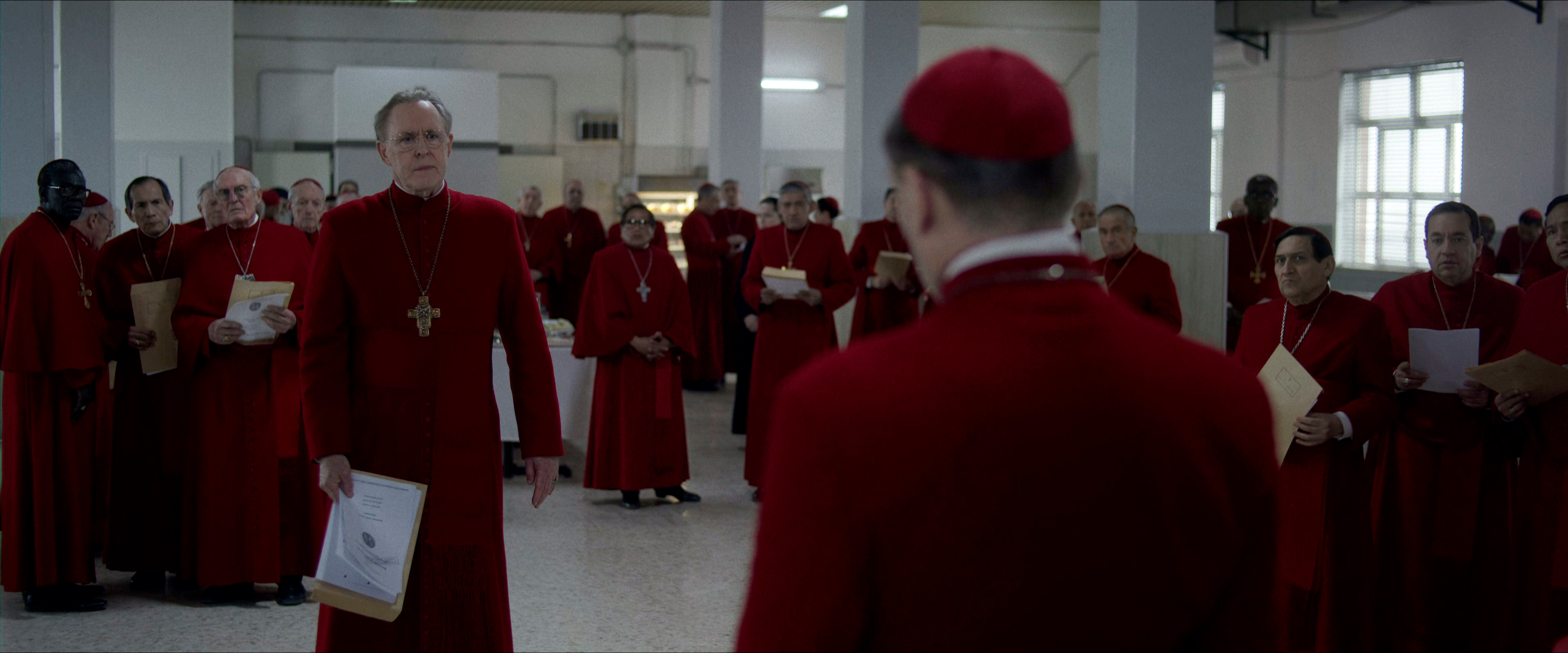 Среди участвующих в голосовании кардиналов есть определенные фавориты, претендующие на пост Папы Римского, которых поддерживают определенные кардиналы. Центристы предпочитают канадского кардинала Трамбле (Джон Литгоу). Либералы ставят на американца Беллини (Стэнли Туччи), которого поддерживает и сам Лоуренс. Консерваторы - на стороне нигерийского кардинала Адейеми (Лусиан Мсамати). Выбор реакционеров - итальянский кардинал Тедеско (Серджо Кастеллито), и его кандидатура вызывает ужас у либерального крыла.