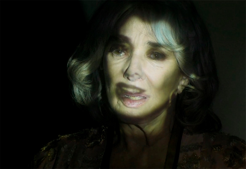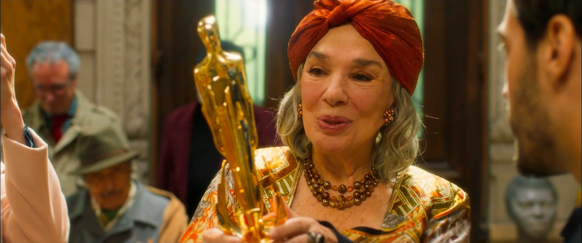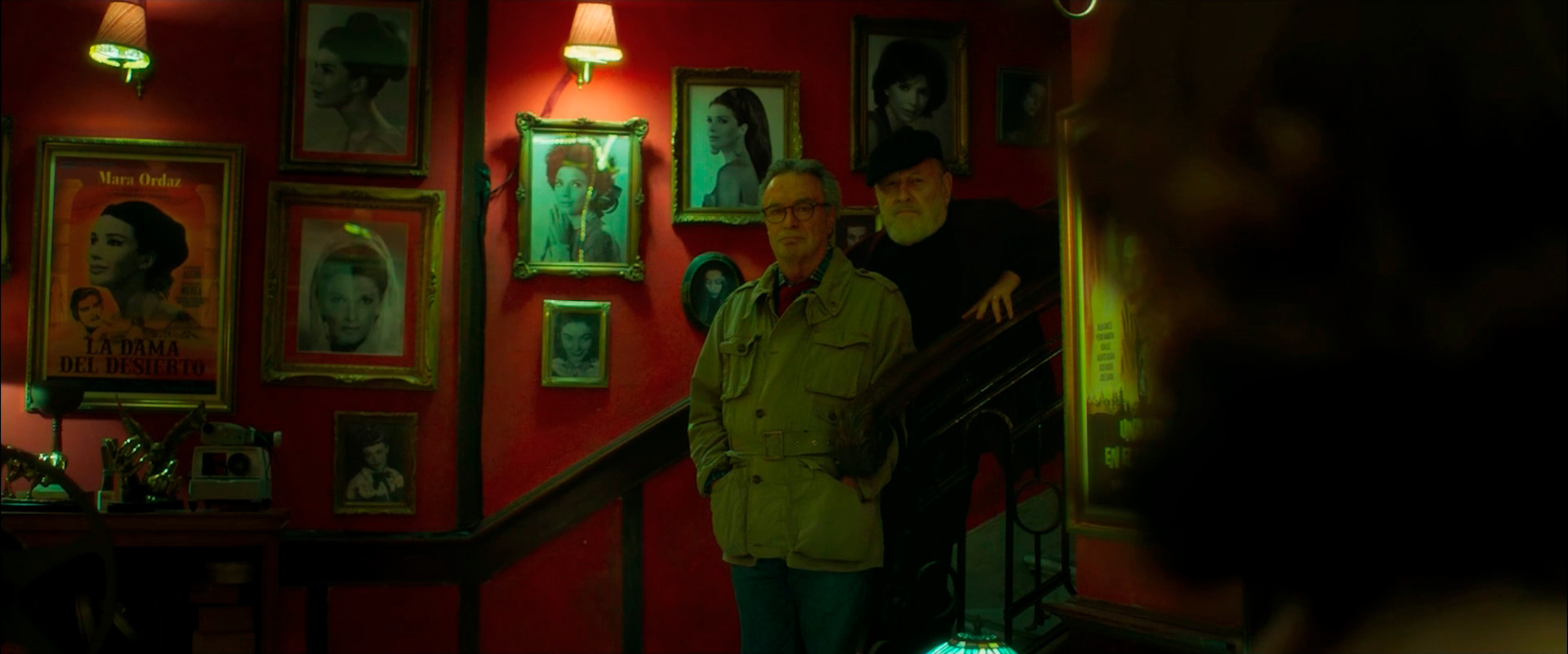 Здесь Грасиэла играет отлично! Манеры, препирательства с остальными мужчинами, жизнь воспоминаниями, пересмотр своих фильмов, переживания вручения "Оскара" вновь и вновь - это просто супер! Причем еще режиссер снял совершенно шикарный эпизод, как Мара, смотрящая свой старый фильм, выясняет отношения с мужем Педро, и там ее экранная героиня накладывается на нынешнюю Мару - это было очень здорово сделано, вот кадр из данного эпизода.
