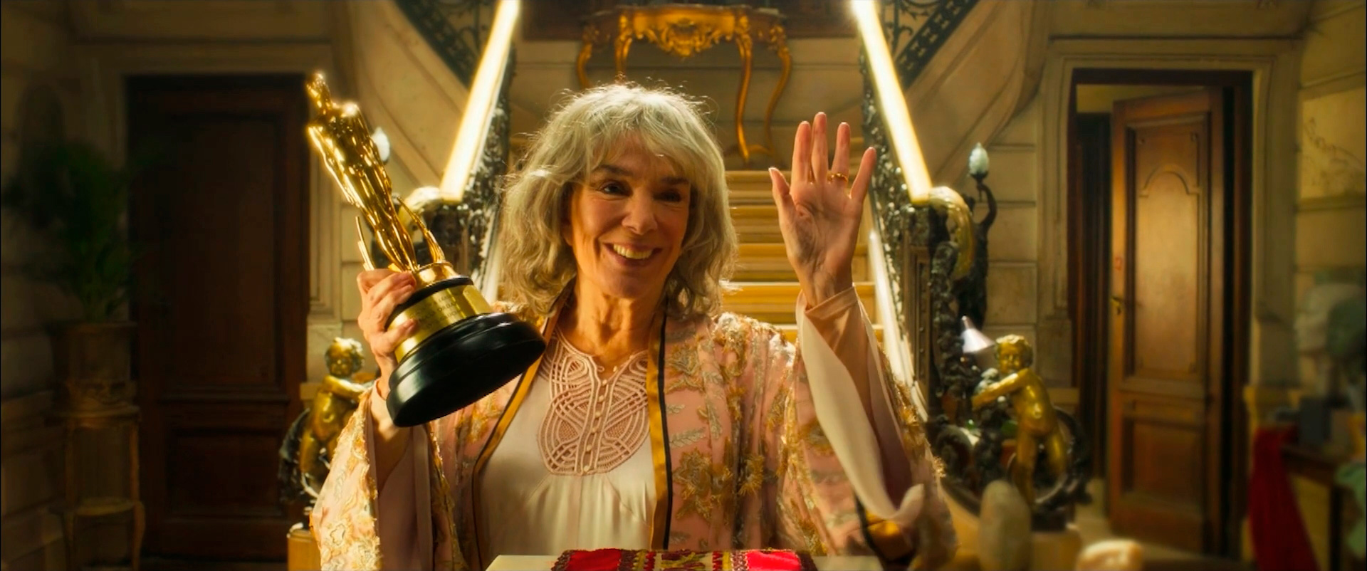 То есть здесь наблюдается некоторое несоответствие баланса вроде бы интересной жизненной истории - престарелая кинодива в компании хитрованных старичков и двух подлых риелторов, которые хотят купить дом - и довольно резких натяжек в сюжетных поворотах в виде конкретной черноюморной буффонады.
