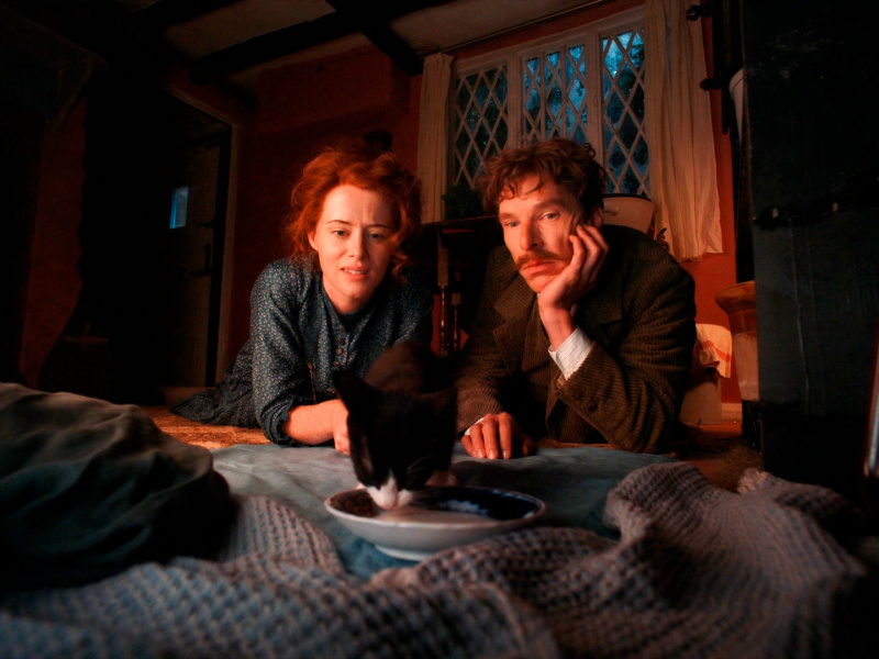 Актеры в картине заняты отличные. Бенедикту Камбербэтчу не впервой играть такую асоциальную и своеобразную личность со своими психологическими проблемами, и он Луиса Уэйна играет просто отлично. Роль сложная и многогранная: он не просто эдакий странноватый человек, который находился под постоянным прессом сестер, пошедший против общепринятой морали, женившись на женщине старше него на десять лет, да еще и из совершенно другого, намного более низкого социального слоя, он еще и постепенно теряет рассудок, и Камбербэтч, на мой взгляд, это все изобразил великолепно!