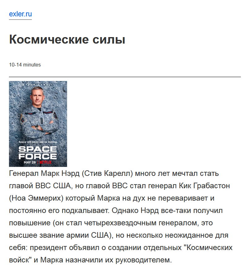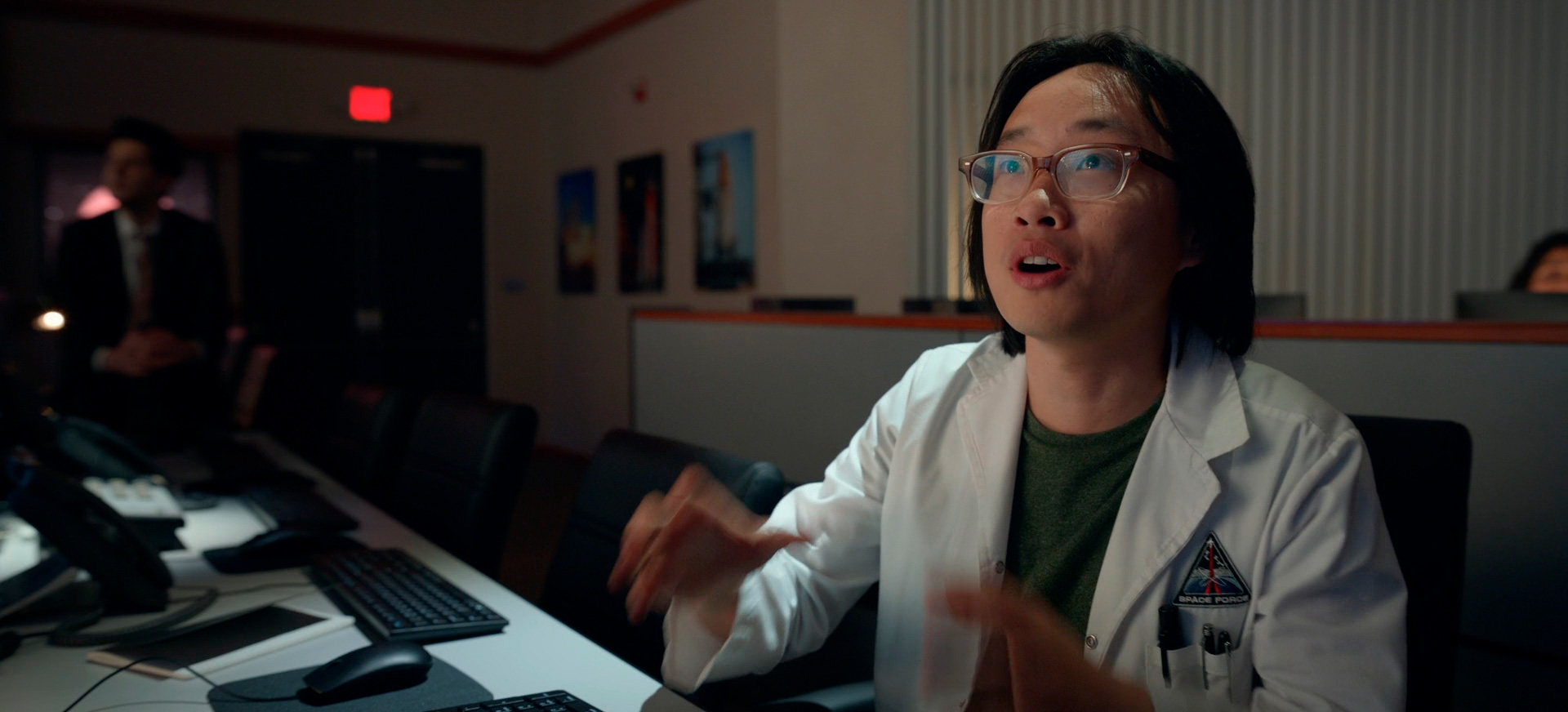Структурно сериал сделан следующим образом: каждая серия рассказывает какую-то свою отдельную историю, причем, как правило, начинается это с очередного идиотского приказа командования (там особенно министр обороны зажигает), а дальше Марк с Энтони и подручными будут это все разгребать. Починка с помощью обезьяны спутника, сломанного китайцами; слушания в конгрессе по поводу больших военных расходов (Александрию Окасио-Кортес там хорошо спародировали); запуск ракеты; попытки откреститься от новой формы, которую предлагает первая леди; тренировка в макете лунной базы; военная игра; отправка корабля с астронавтами на Луну. При этом создатели сериала (да и Netflix тоже) не парятся жестким временным форматом: продолжительность серий - от 26 до 36 минут.