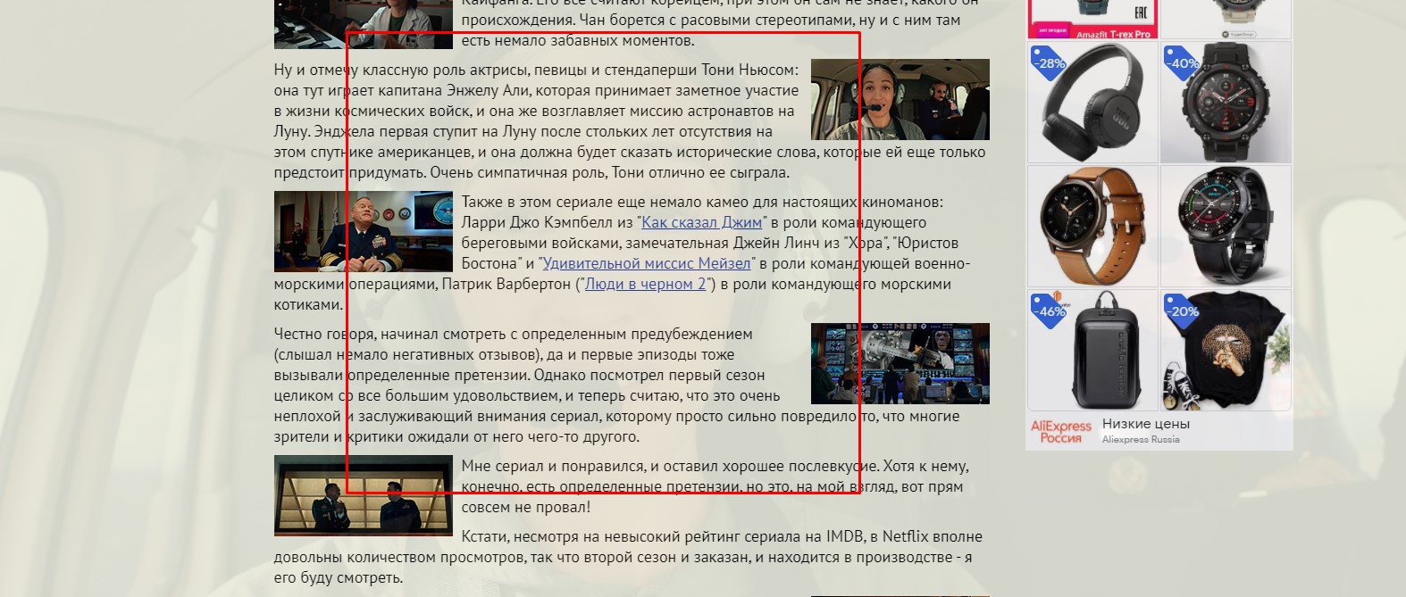 Ну и отмечу классную роль актрисы, певицы и стендаперши Тони Ньюсом: она тут играет капитана Энжелу Али, которая принимает заметное участие в жизни космических войск и которая возглавляет миссию астронавтов на Луну. Энджела первая ступит на Луну после стольких лет отсутствия на этом спутнике американцев, и она должна будет сказать исторические слова, которые ей еще только предстоит придумать. Очень симпатичная роль, Тони отлично ее сыграла.
